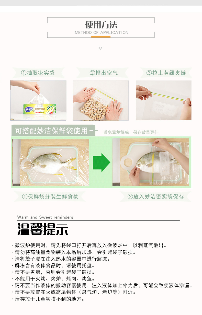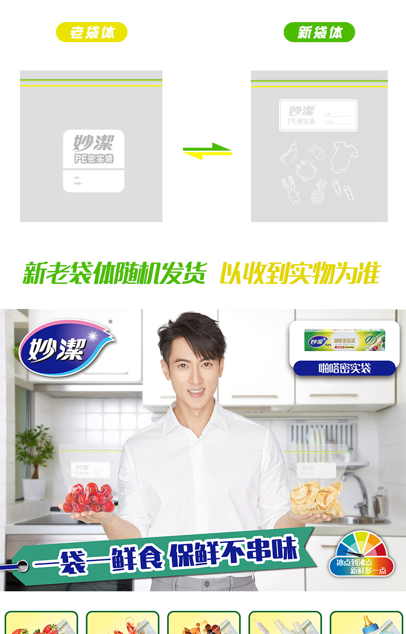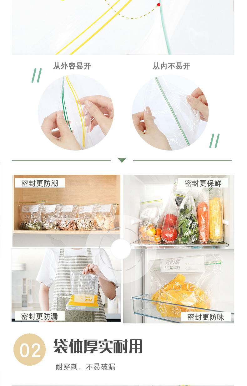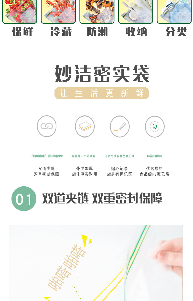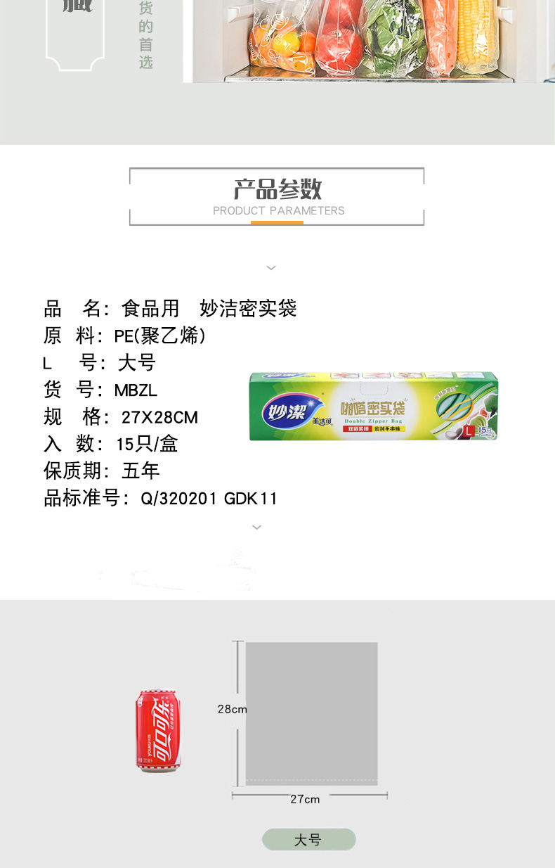 妙洁美洁可致优系列密实袋大号15只 浅杉绿