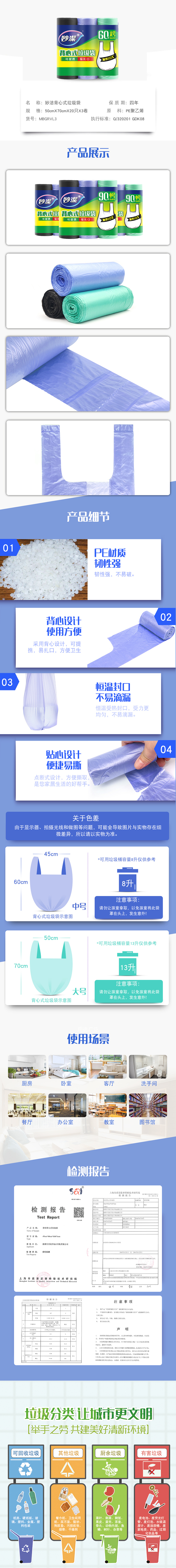 妙洁背心式垃圾袋大号超值装20只*3卷 灰蓝色
