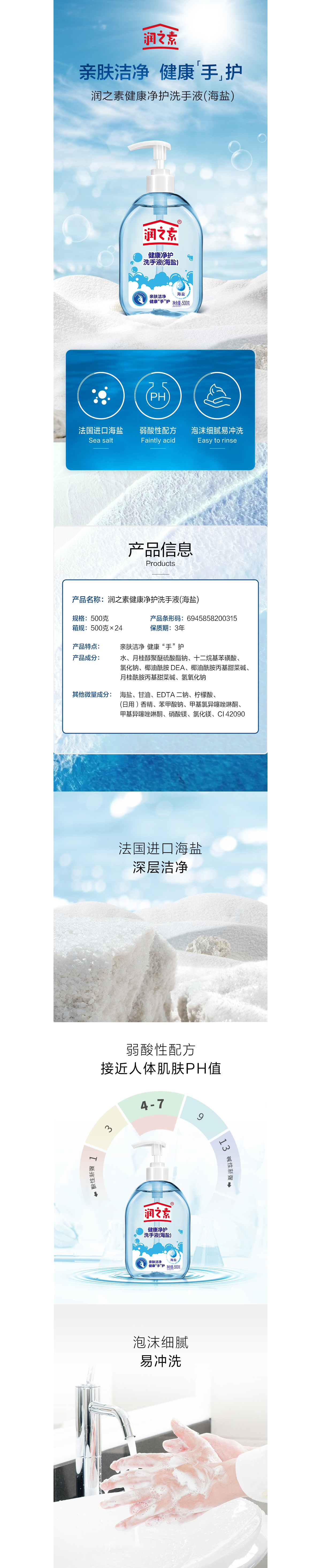 润之素健康净护洗手液海盐500g(单位:瓶) 蓝色