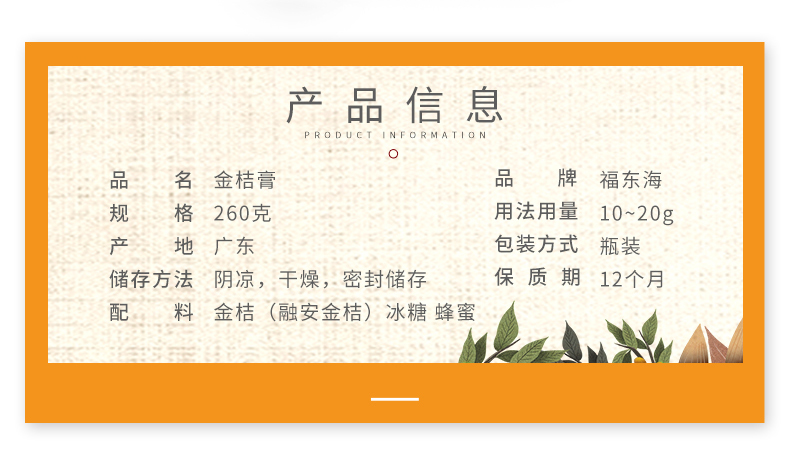 福东海(fudonghao)金桔膏260克 FDH-JJG260(单位:瓶) 棕色