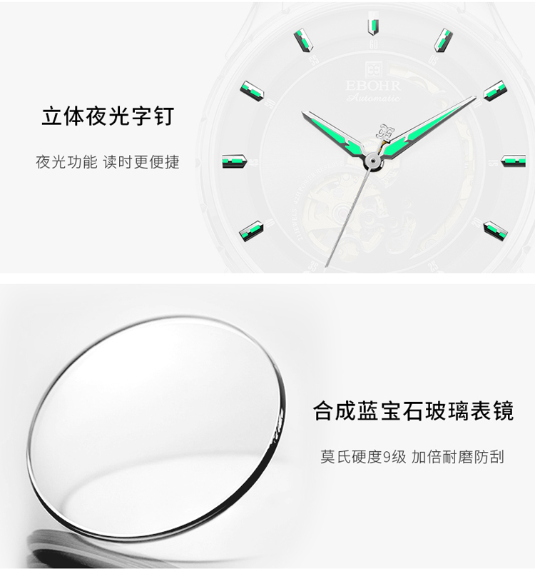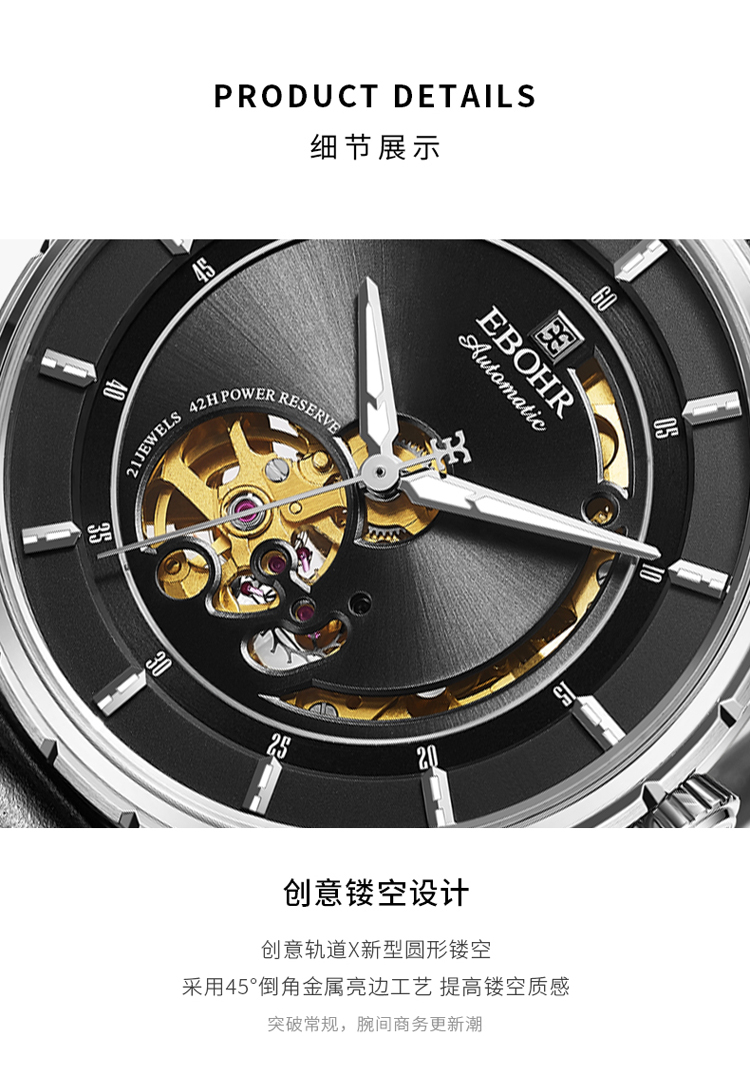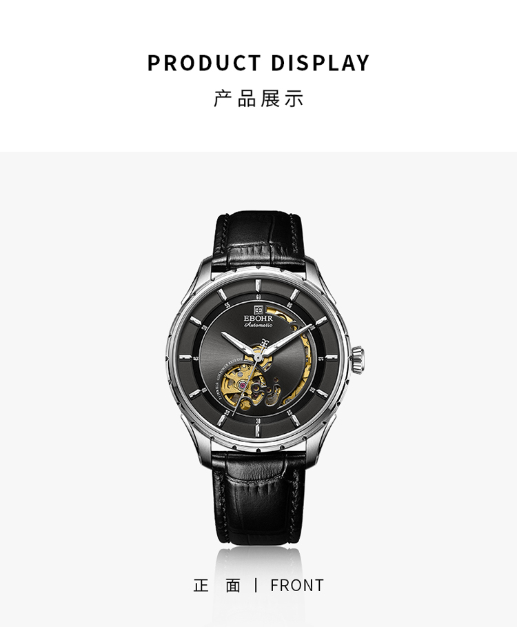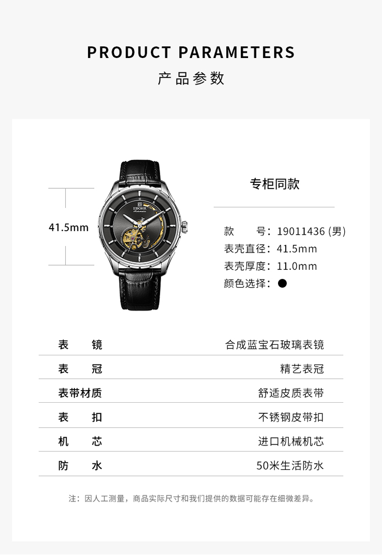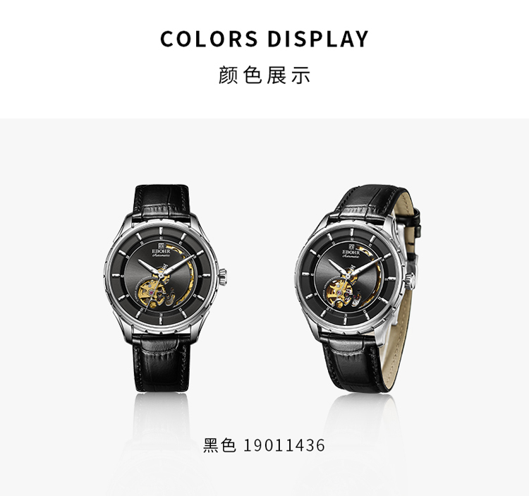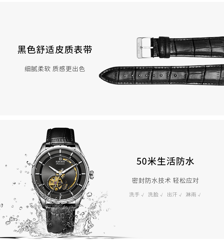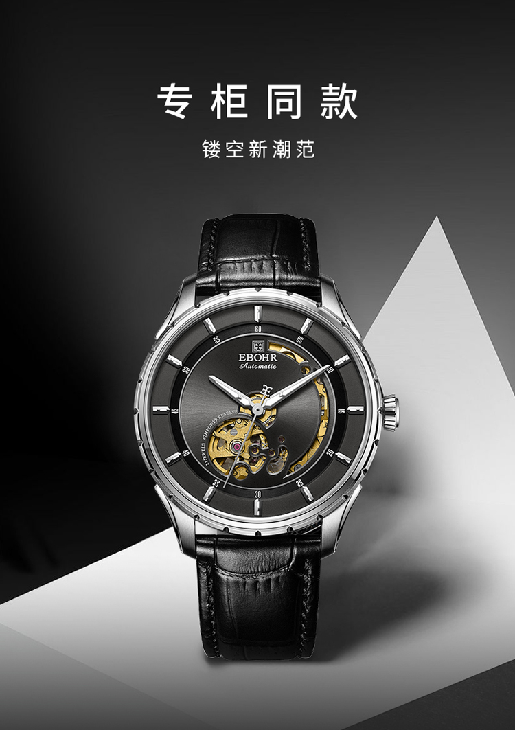 依波(EBOHR) 大师系列 机械手表时尚商务黑盘皮带男表19011436 (单位1块) 黑色