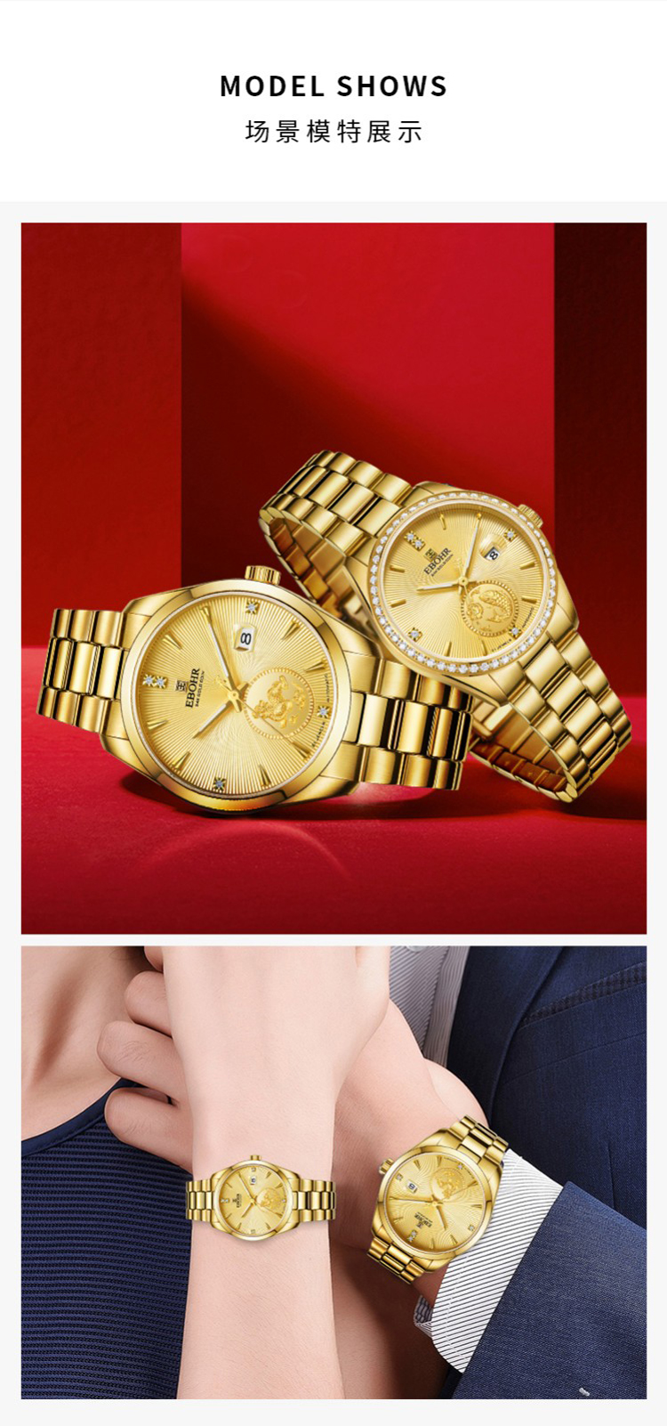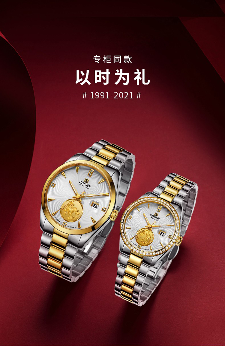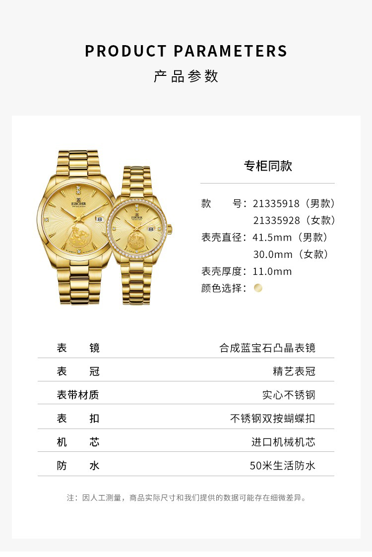 依波(EBOHR) 大师系列 机械手表【专柜同款】30周年情侣款金色男表21335918(单位1块) 金色
