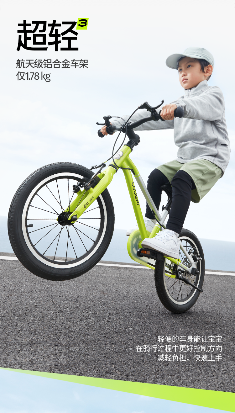 酷骑(COOGH)小飞侠儿童自行车超轻男女小孩3一6岁中大童14/16/18/20寸F3/辆 酷骑F3小飞侠16寸(亮银白)