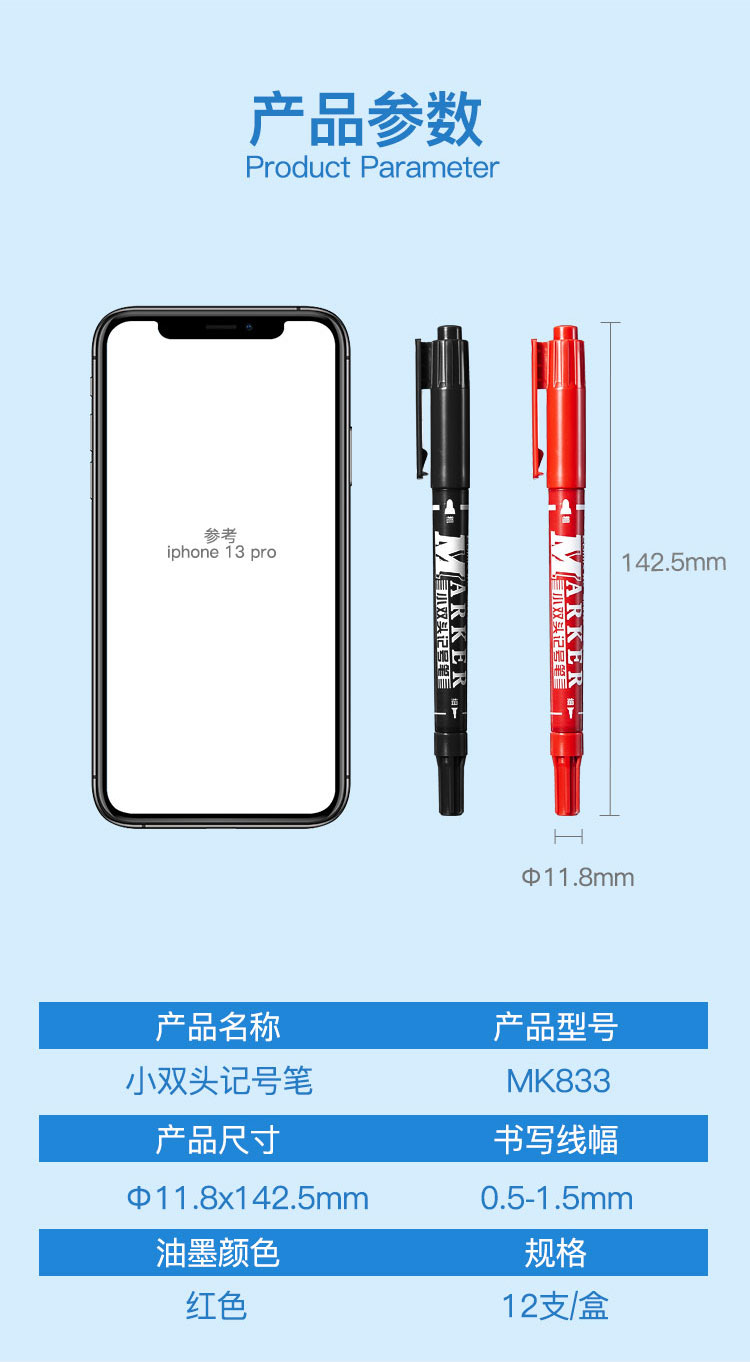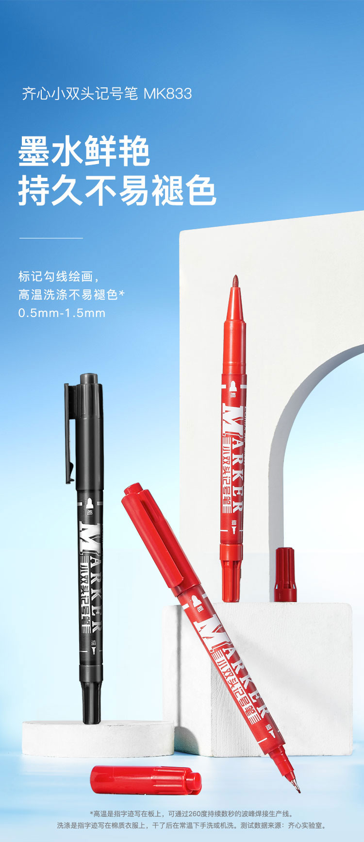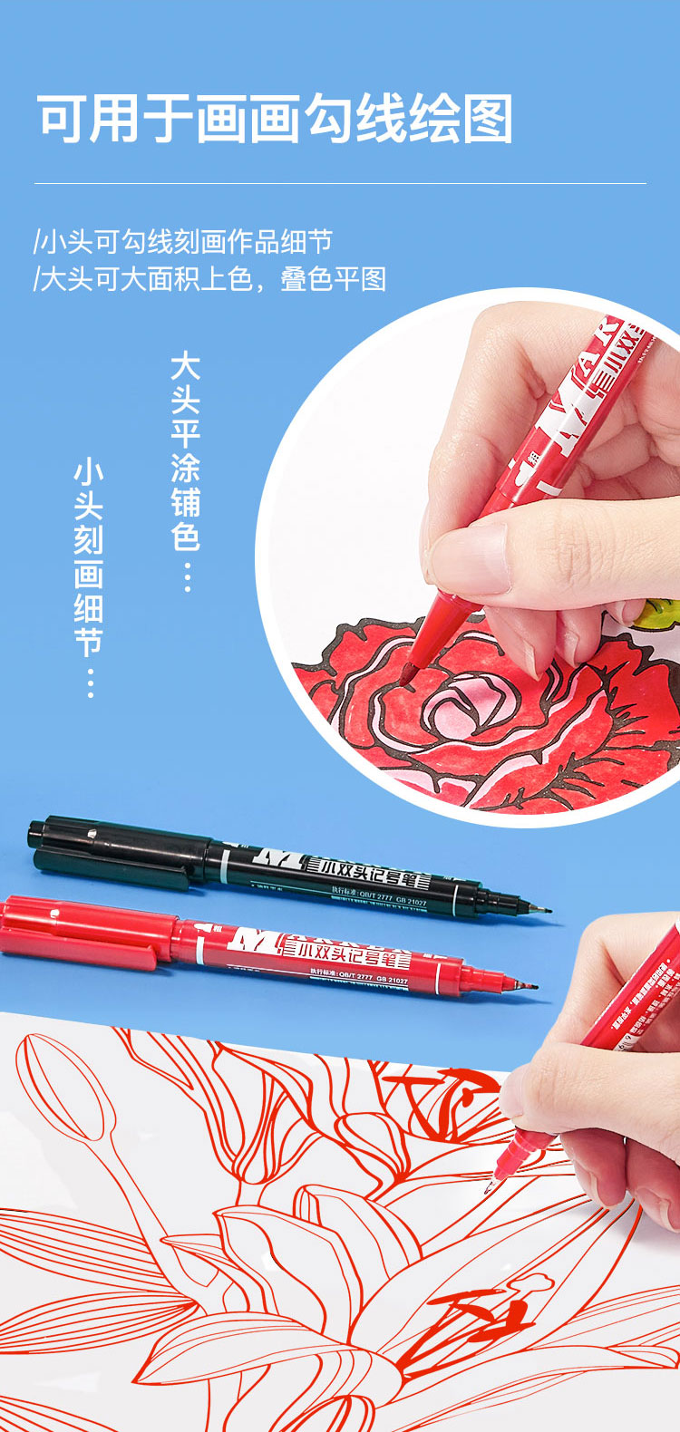齐心COMIX 小双头美术勾线记号笔 0.5-1.5mmMK833 黑色