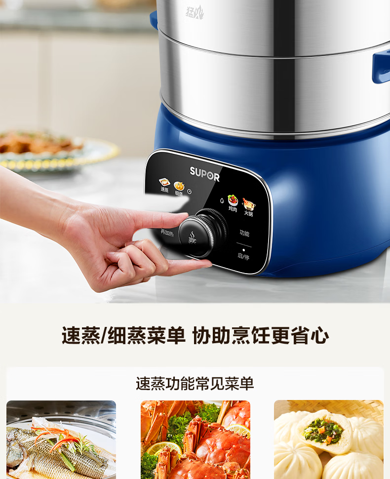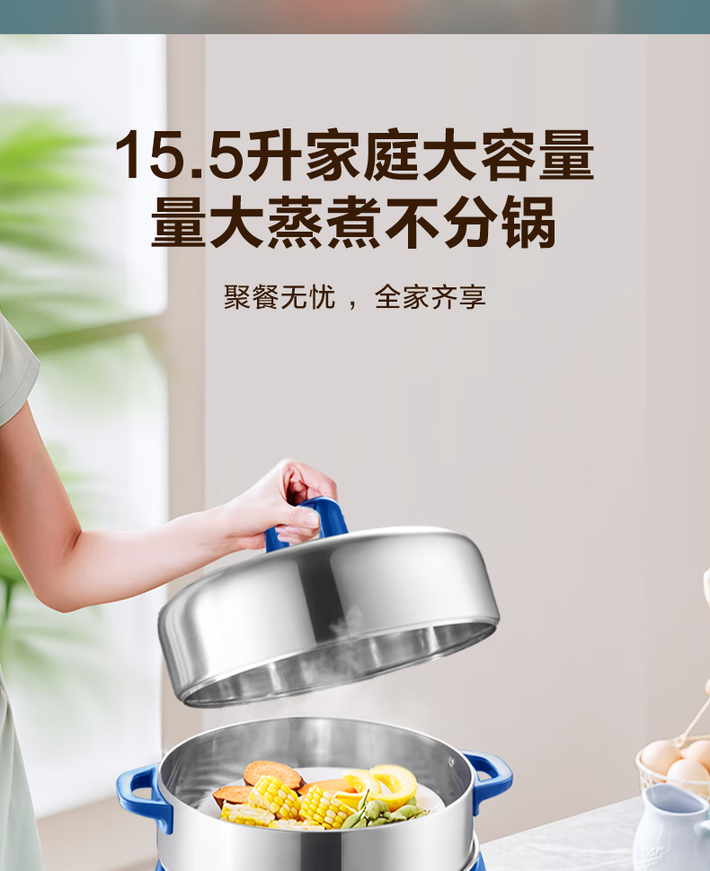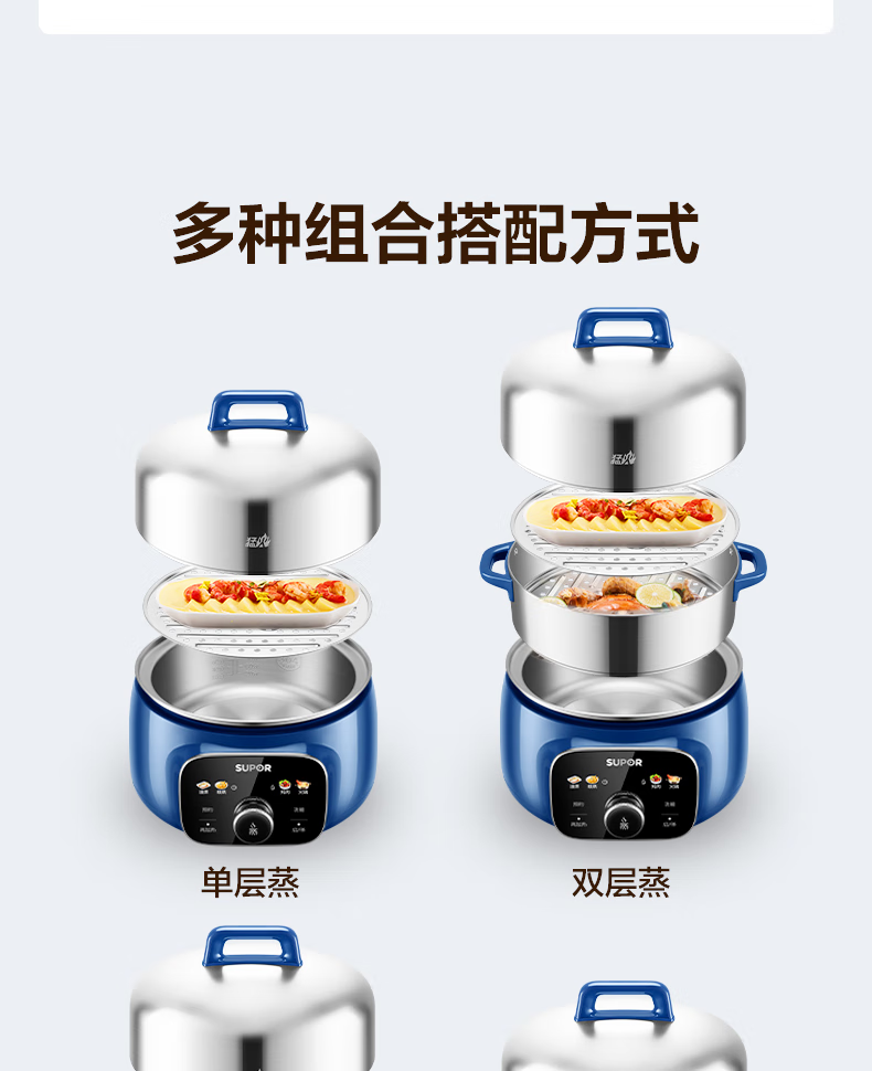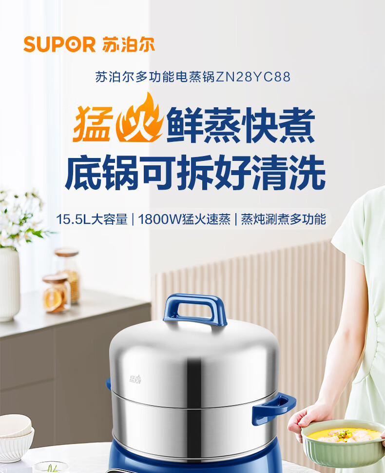 苏泊尔(SUPOR)电蒸锅双层15.5L大容量 【ZN28YC88】1800W(单位:台) 蓝色
