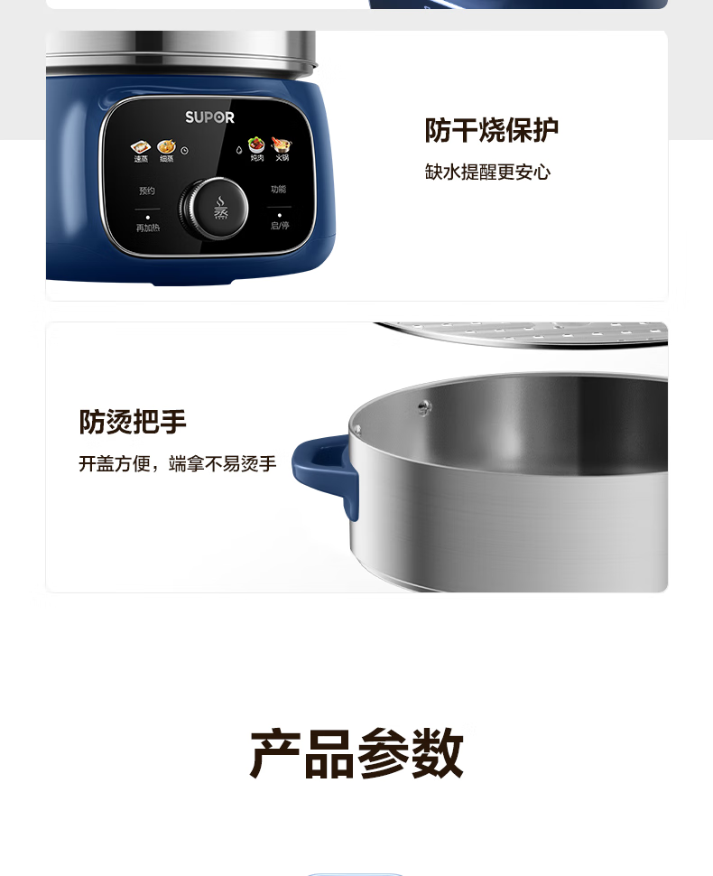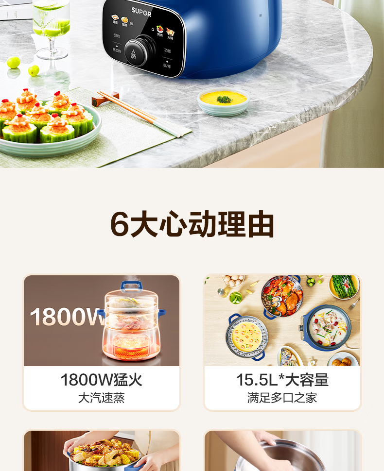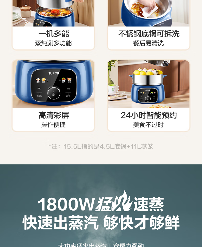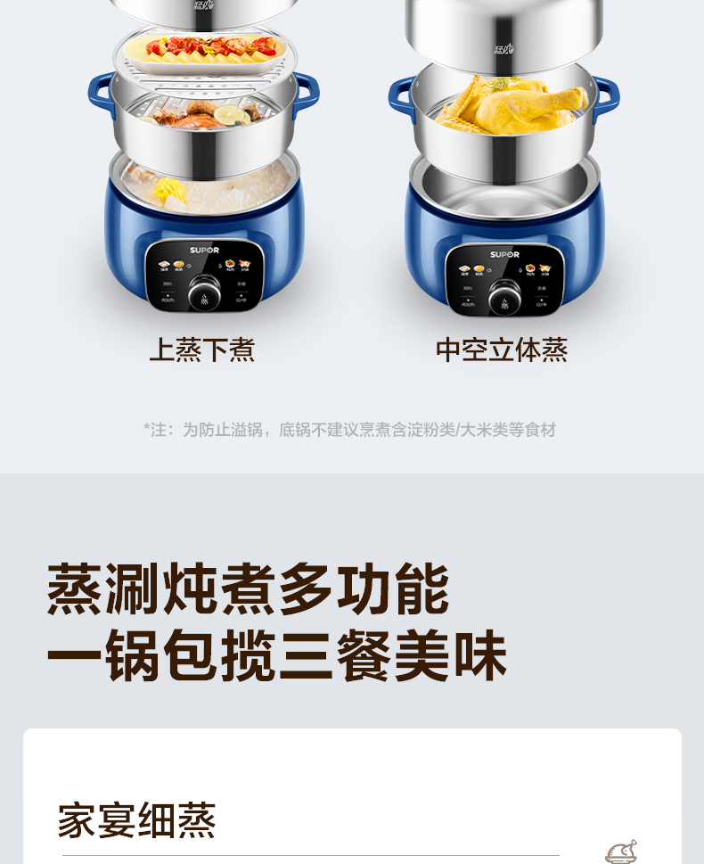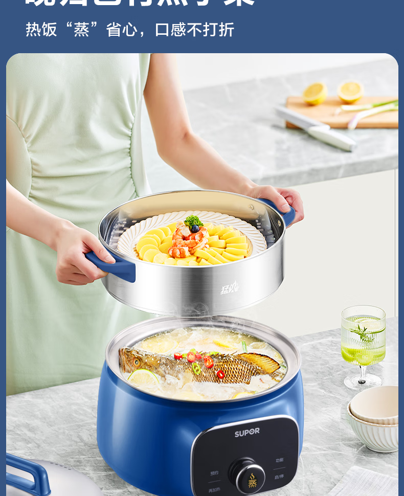 苏泊尔(SUPOR)电蒸锅双层15.5L大容量 【ZN28YC88】1800W(单位:台) 蓝色