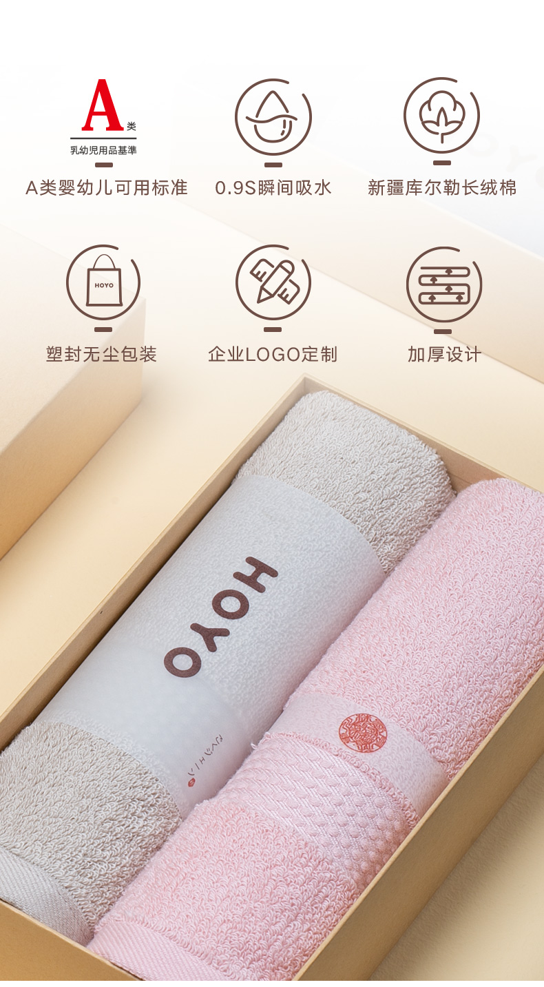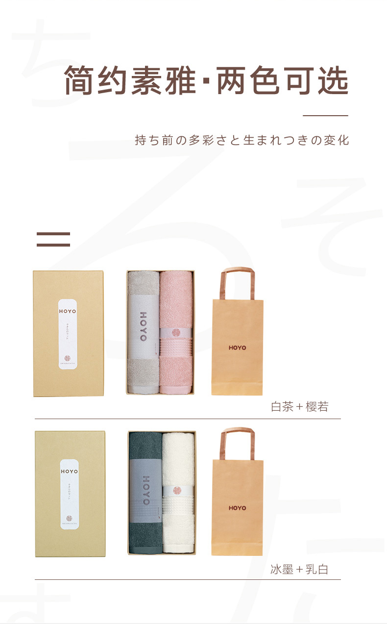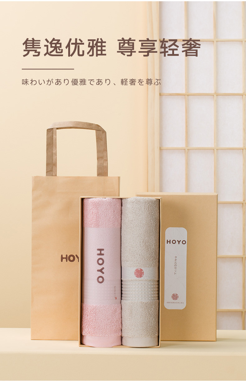HOYO--7242--精梳丝光棉毛巾两件套 白茶色+樱若色 组合装