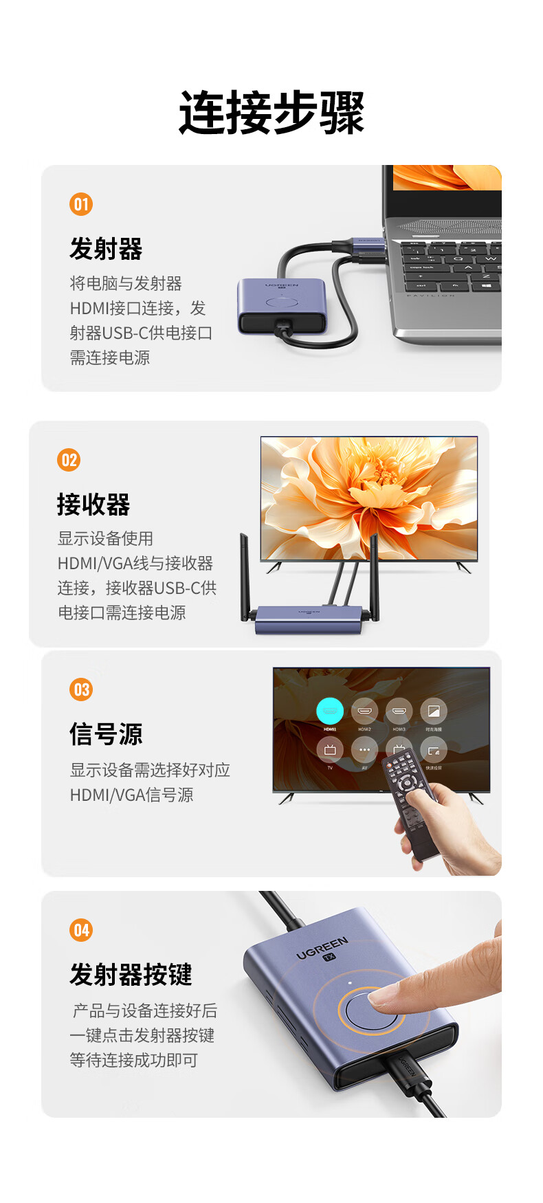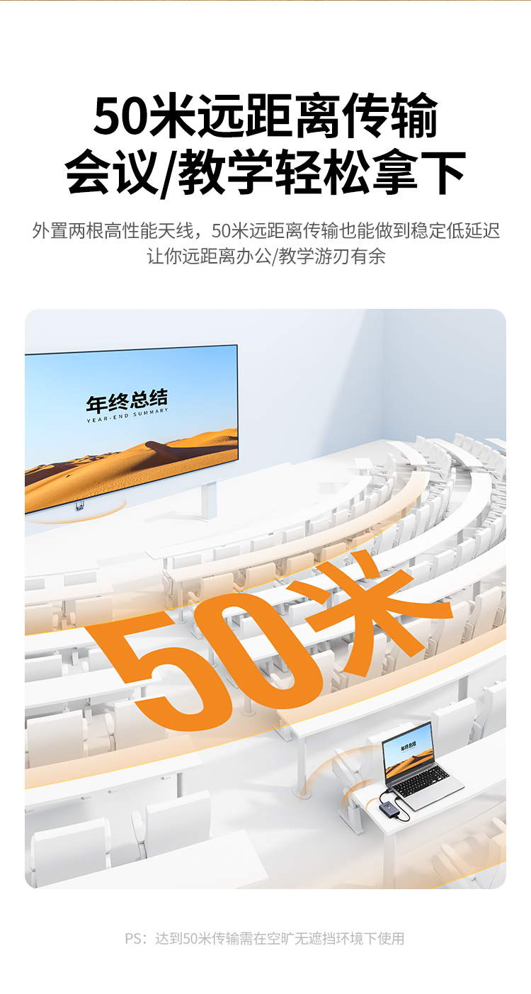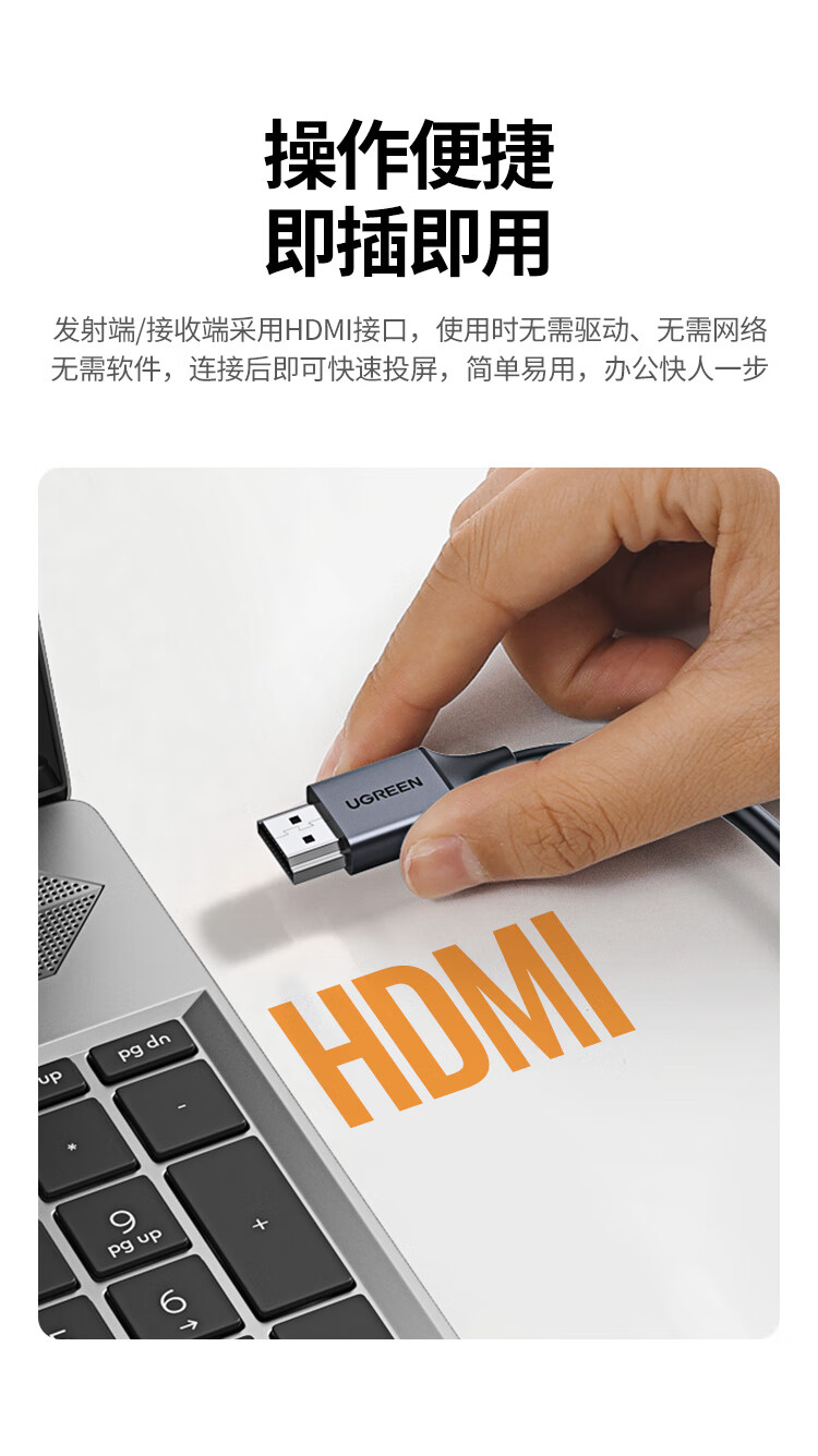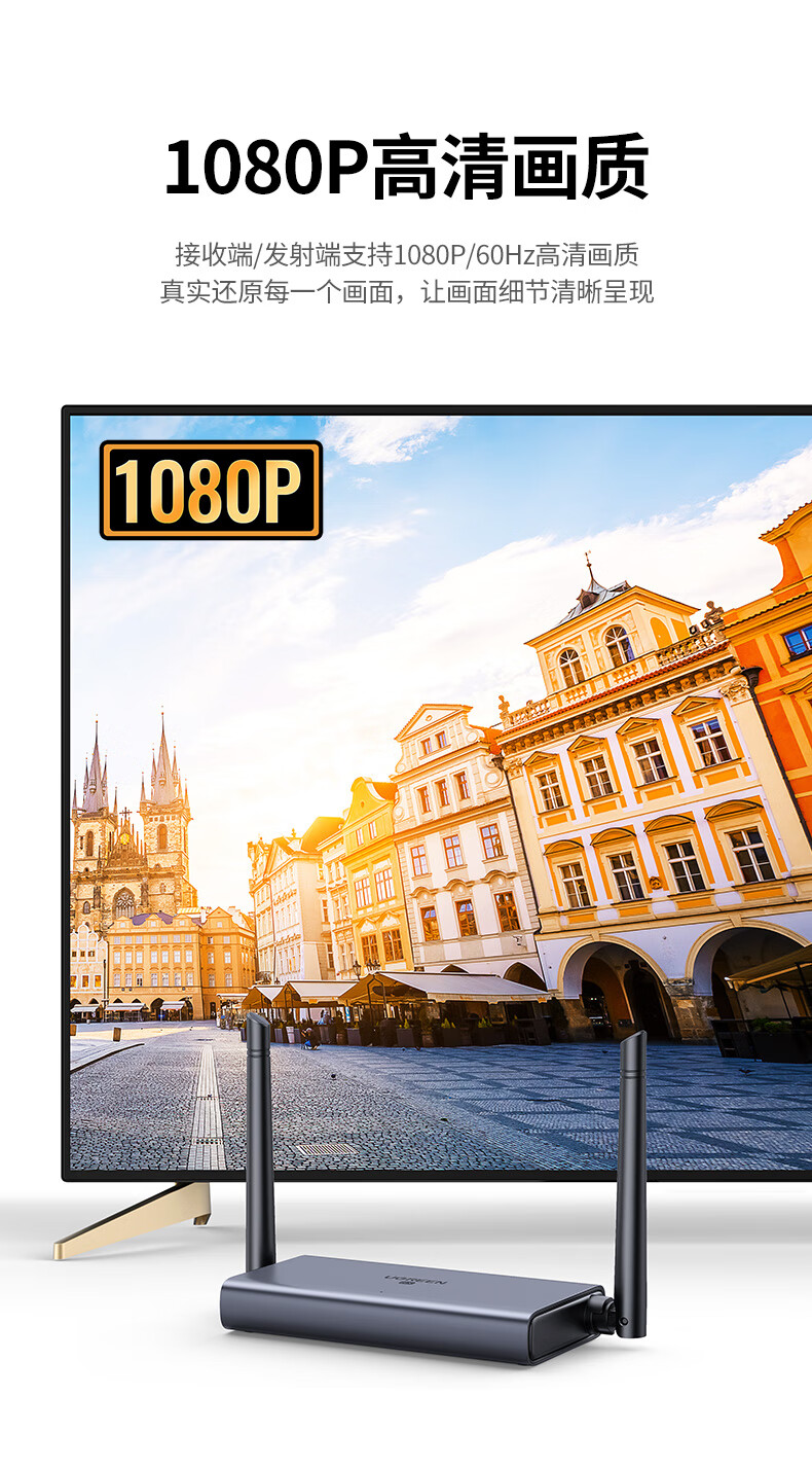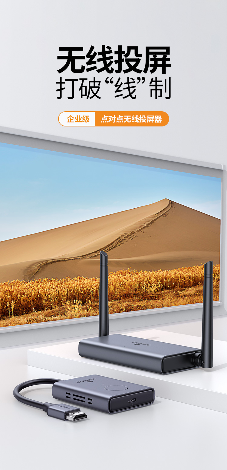 绿联HDMI无线投屏器高清会议同屏器适用笔记本电脑机顶盒接电视显示器投影仪点对点50米传输器50633