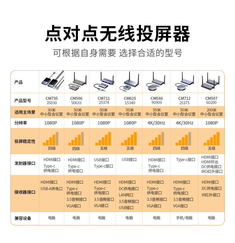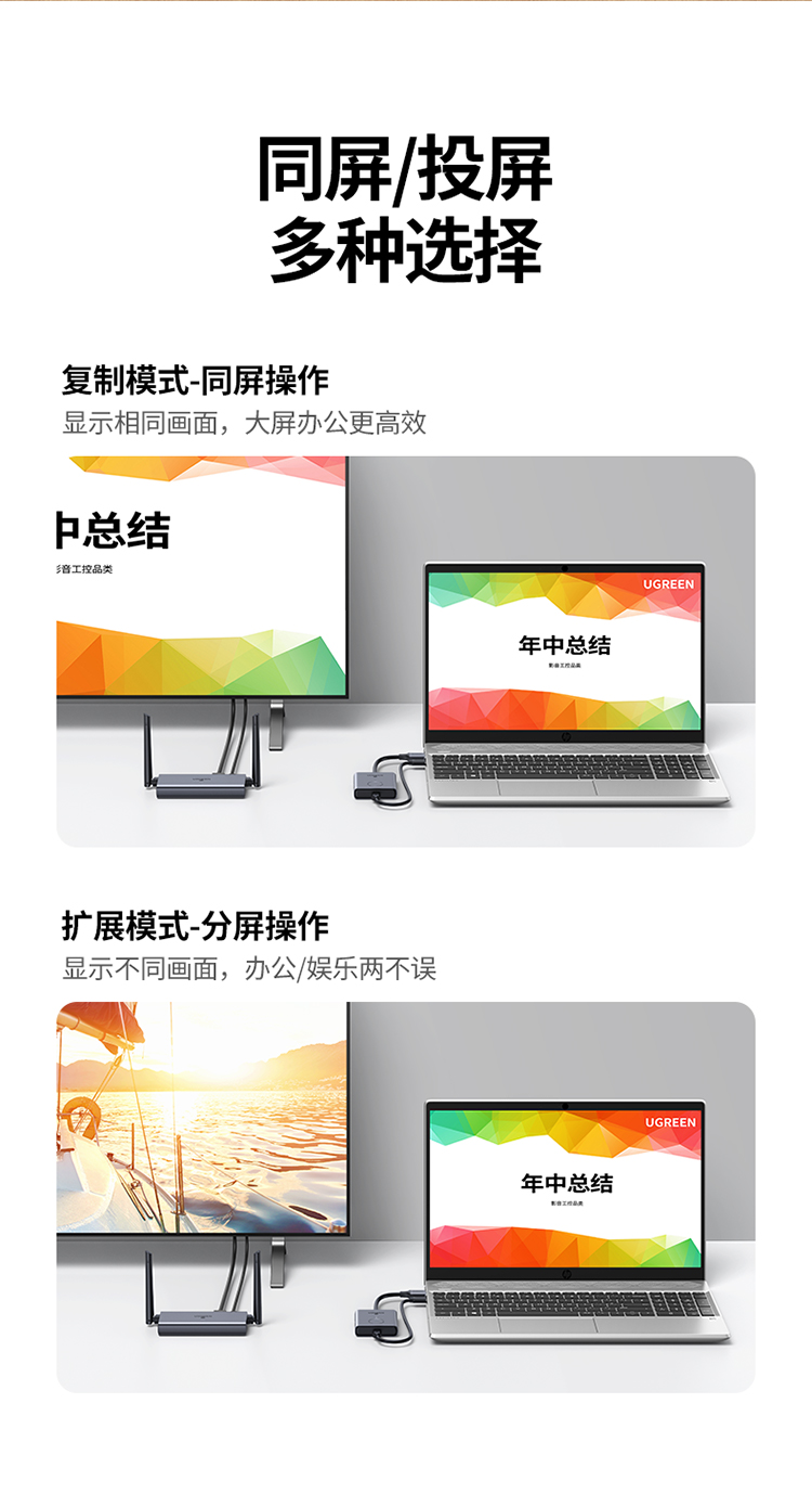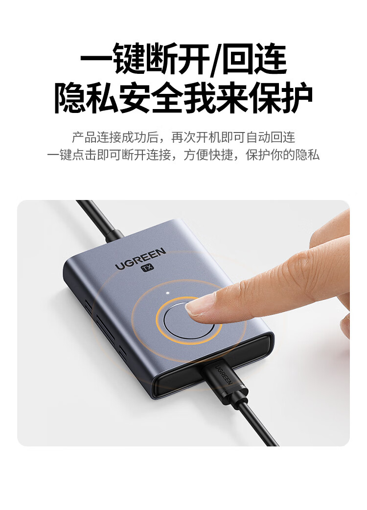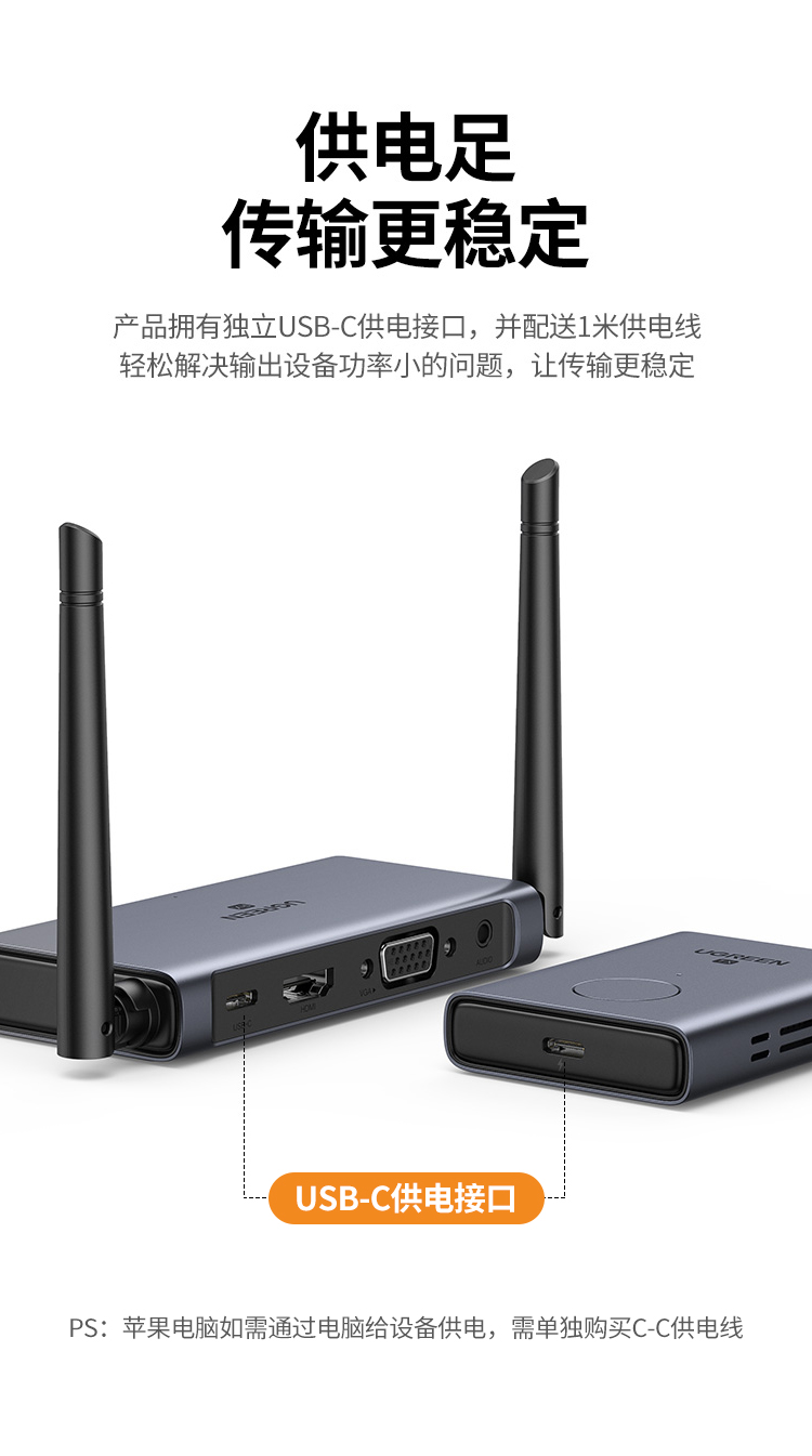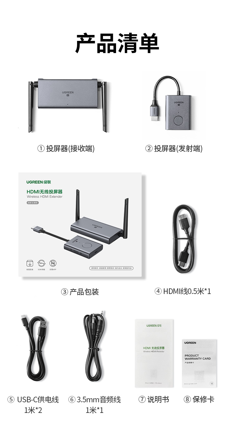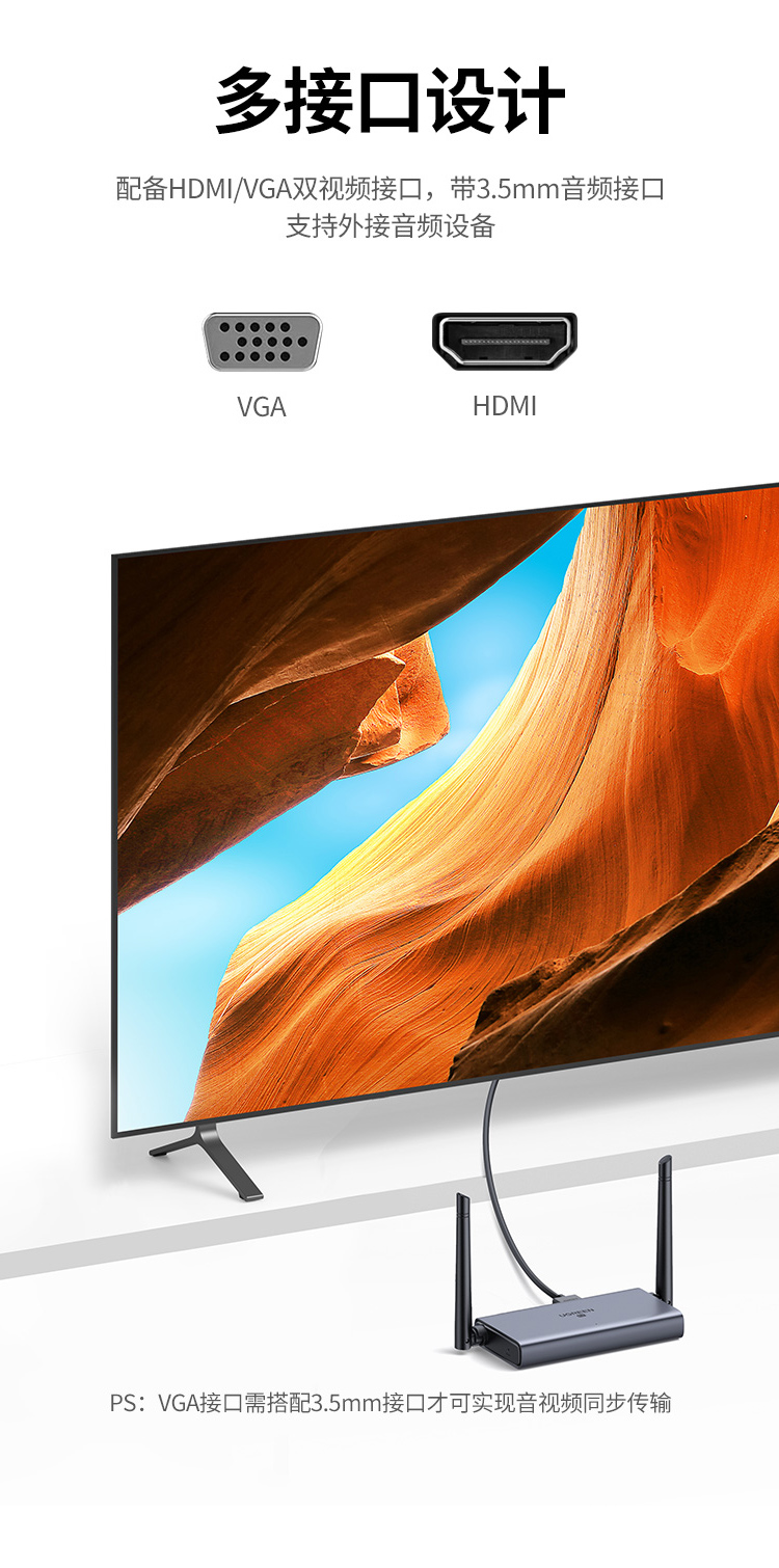 绿联HDMI无线投屏器高清会议同屏器适用笔记本电脑机顶盒接电视显示器投影仪点对点50米传输器50633