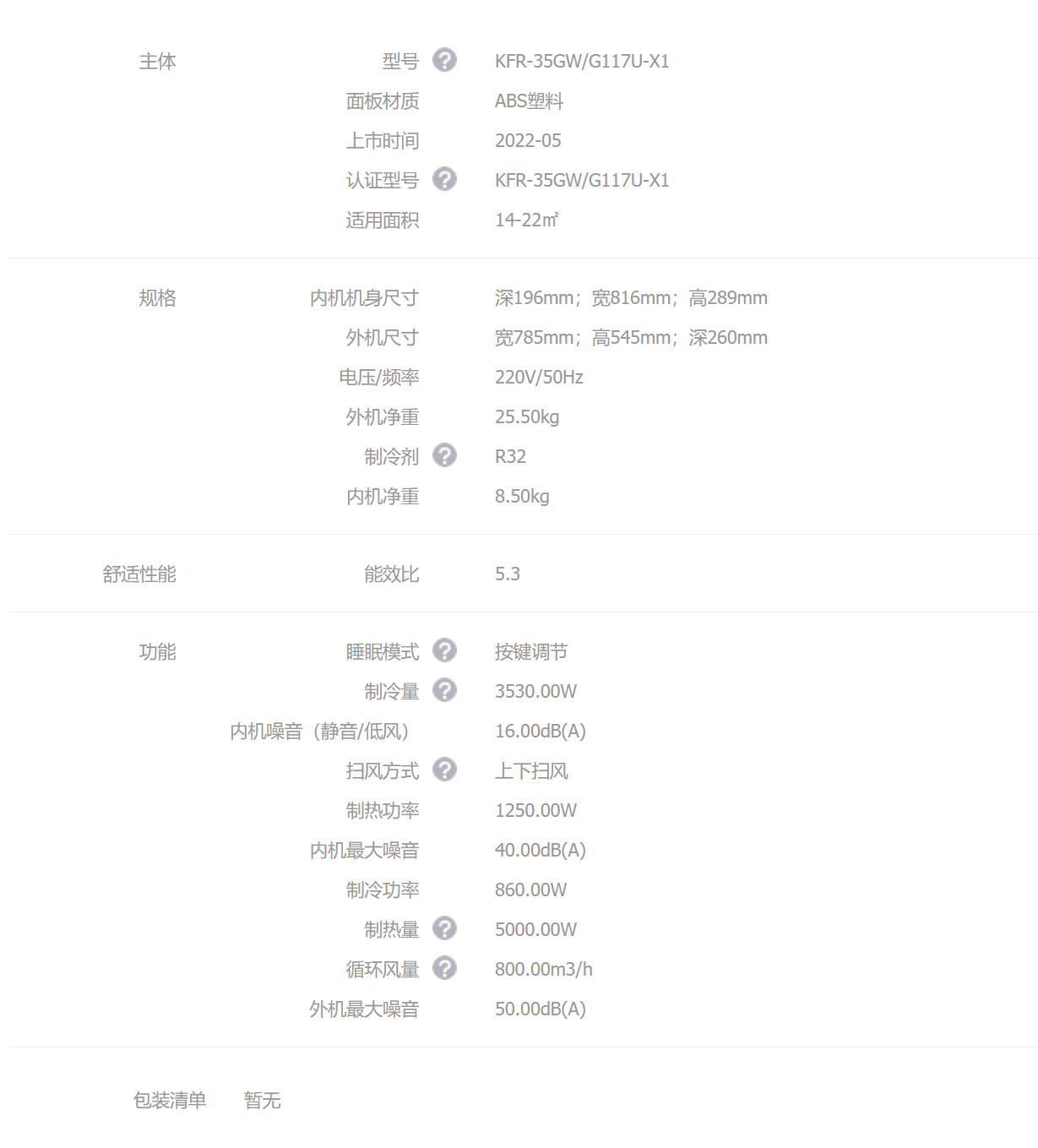 海信(Hisense) KFR-35GW/G117U-X1 -- 变频空调挂机 白色(单位:青岛海信)