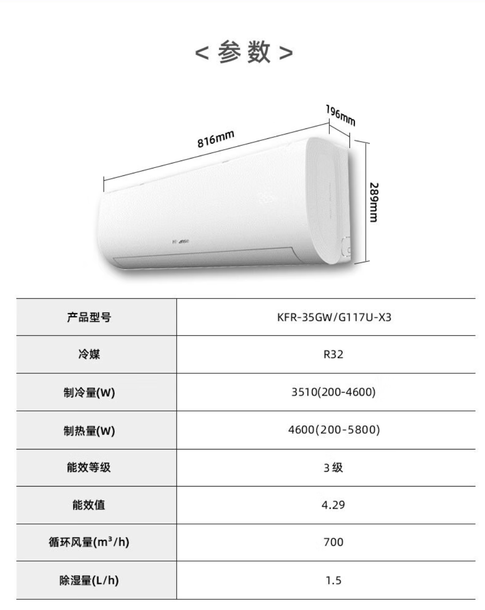 海信(Hisense) KFR-35GW/G117U-X3 - 变频空调挂机 白色(单位:青岛海信)