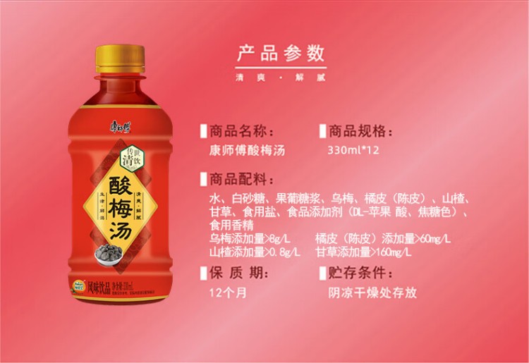 康师傅 酸梅汤 茶饮料、果汁饮料 330ml*12 夏季畅饮 莓果色(单位:箱)