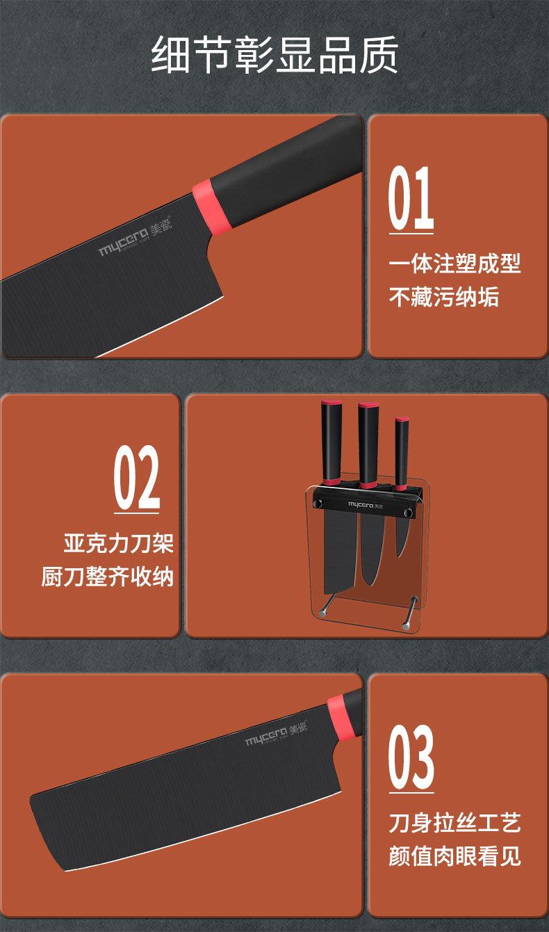美瓷 (mycera) 陶瓷刀合家圆系列厨房刀具五件套 刀具套装 TFZR01(单位:套) 黑色