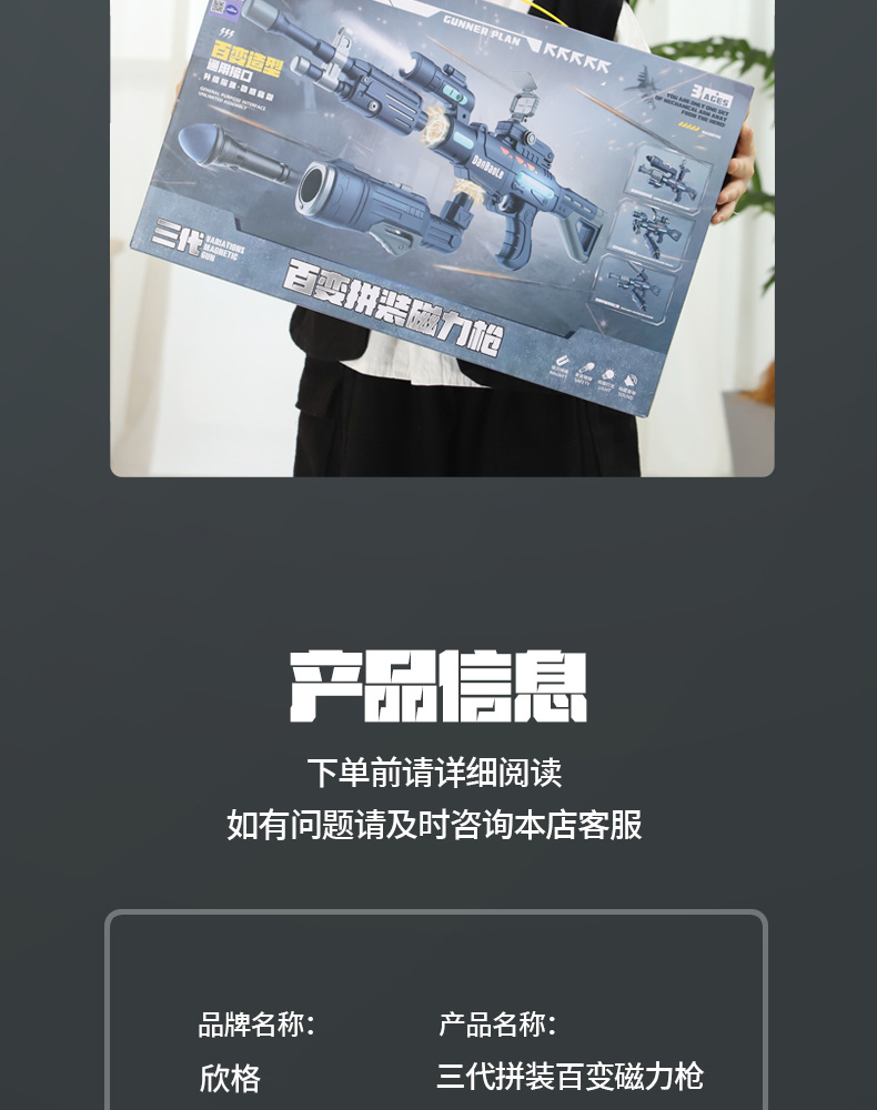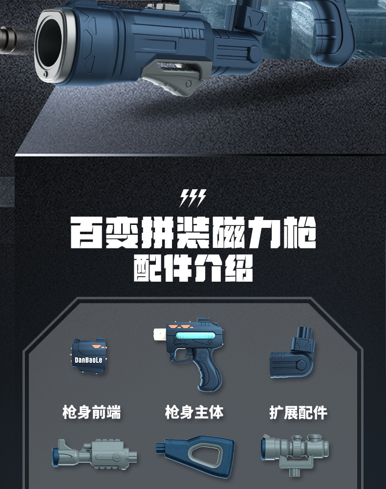 欣格 儿童玩具 DIY磁力枪 43.6x9.3x27.6cm 深蓝色(单位:支)