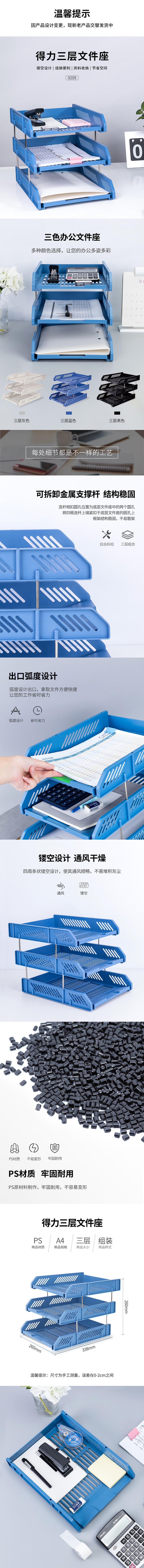 得力(deli) 9209 A4三层 文件座 蓝色(单位:只)