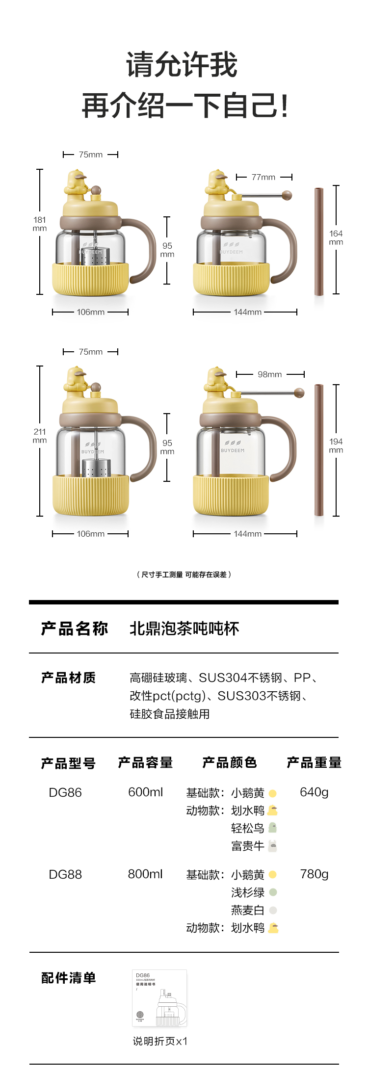 北鼎(Buydeem) DG86/A10 600ML 玻璃杯便携吸管茶杯 富贵牛(单位:个)
