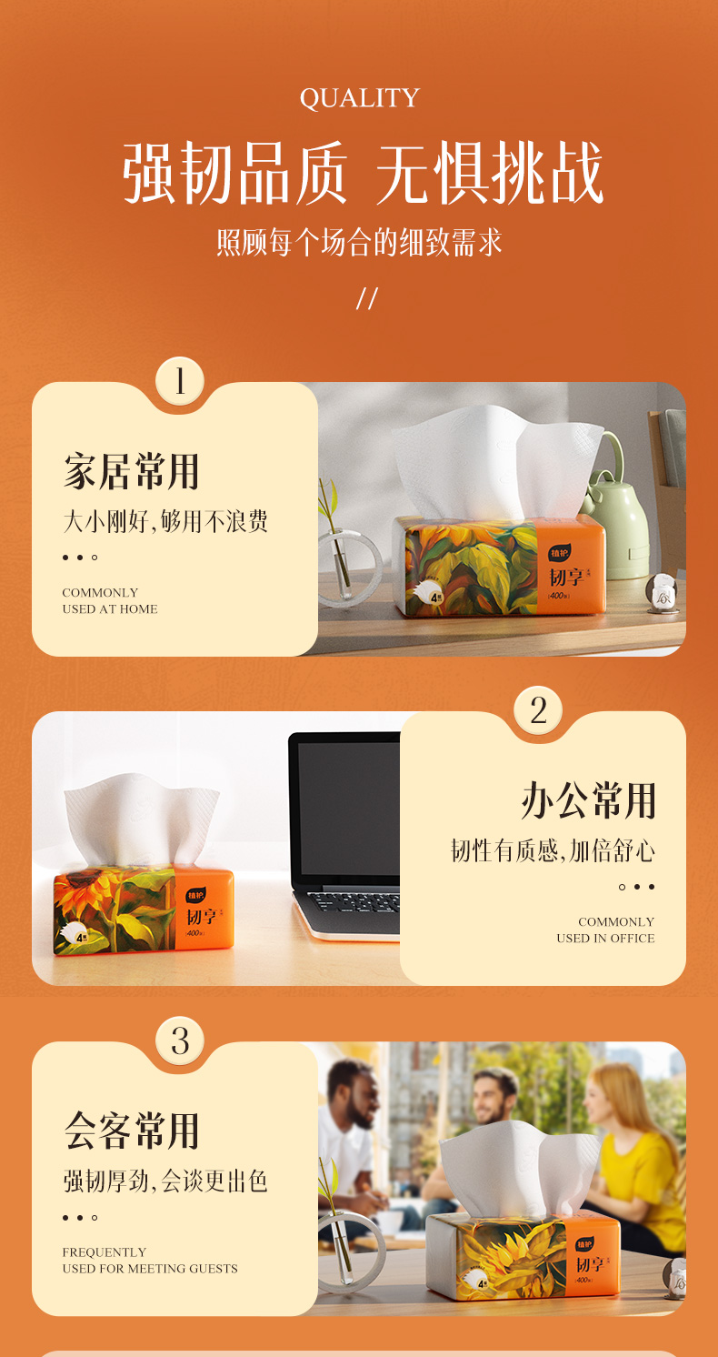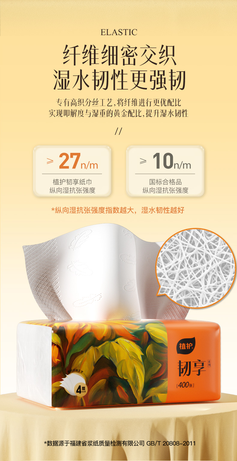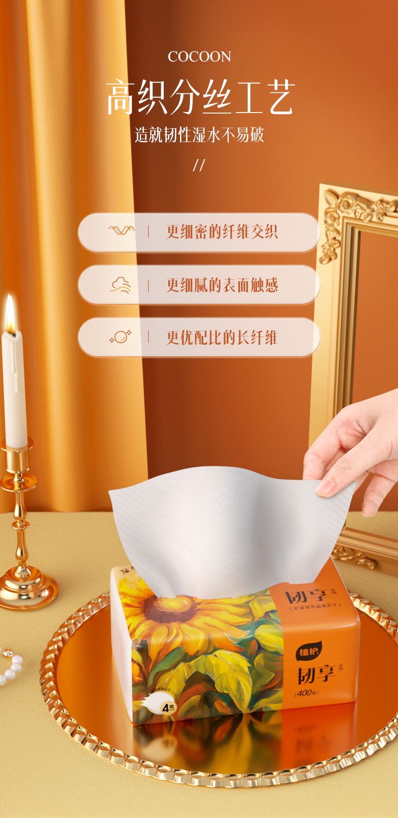 植护 抽纸 韧享系列 4层 *100抽*10包/提 灰橙色(单位:提)