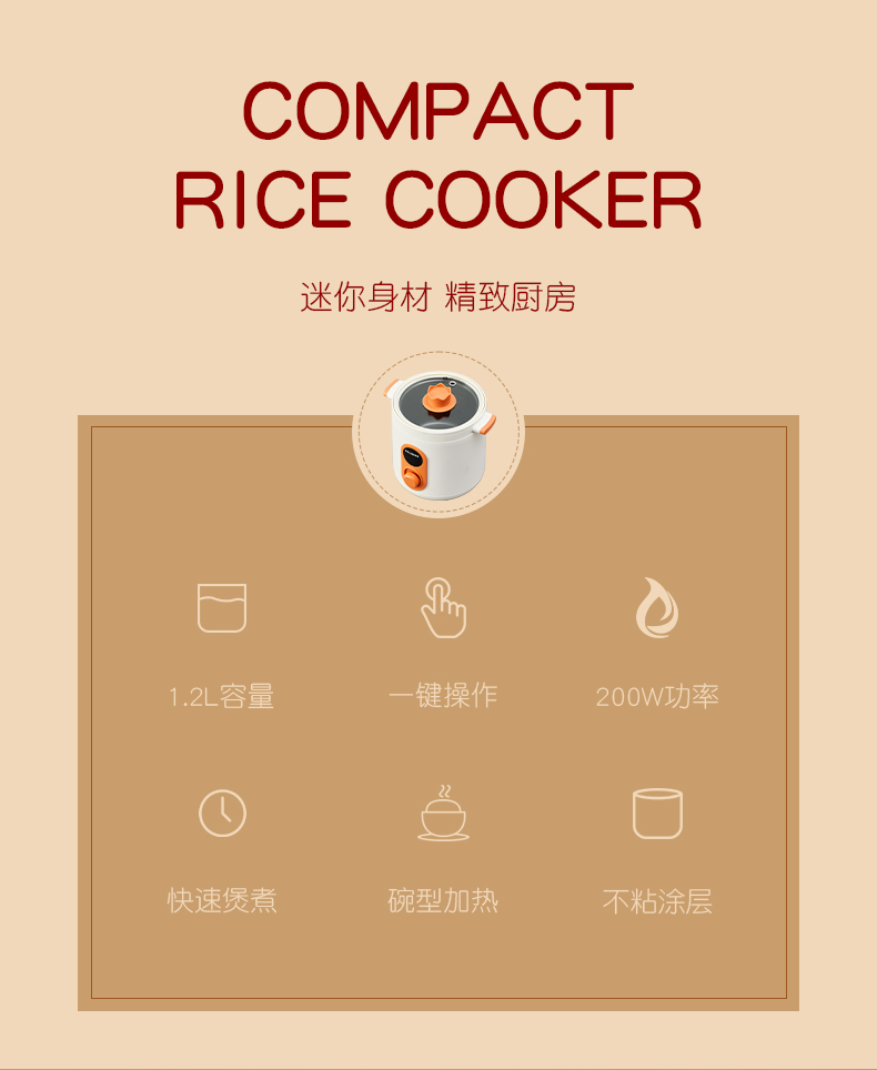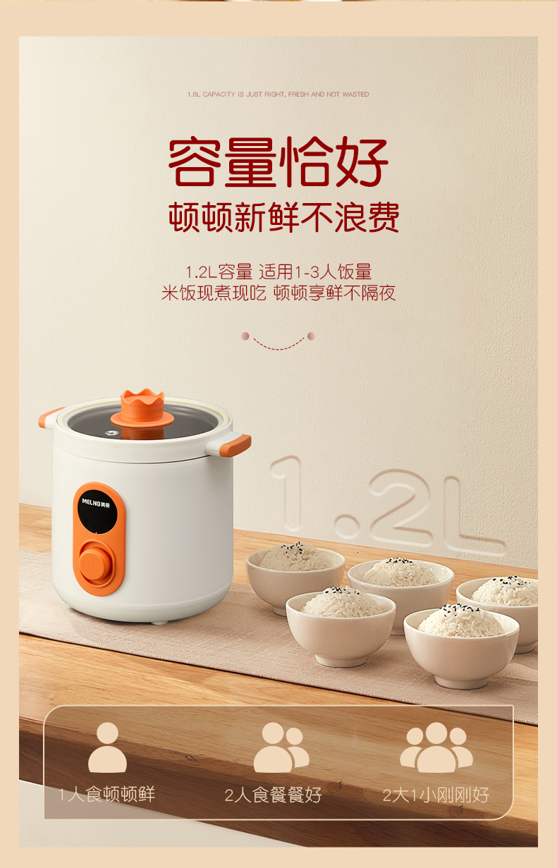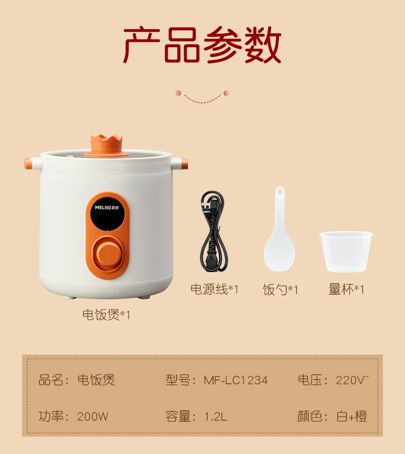 美菱(MELNG)1.2L家用迷你电饭煲 MF-LC1234(单位:台) 象牙色