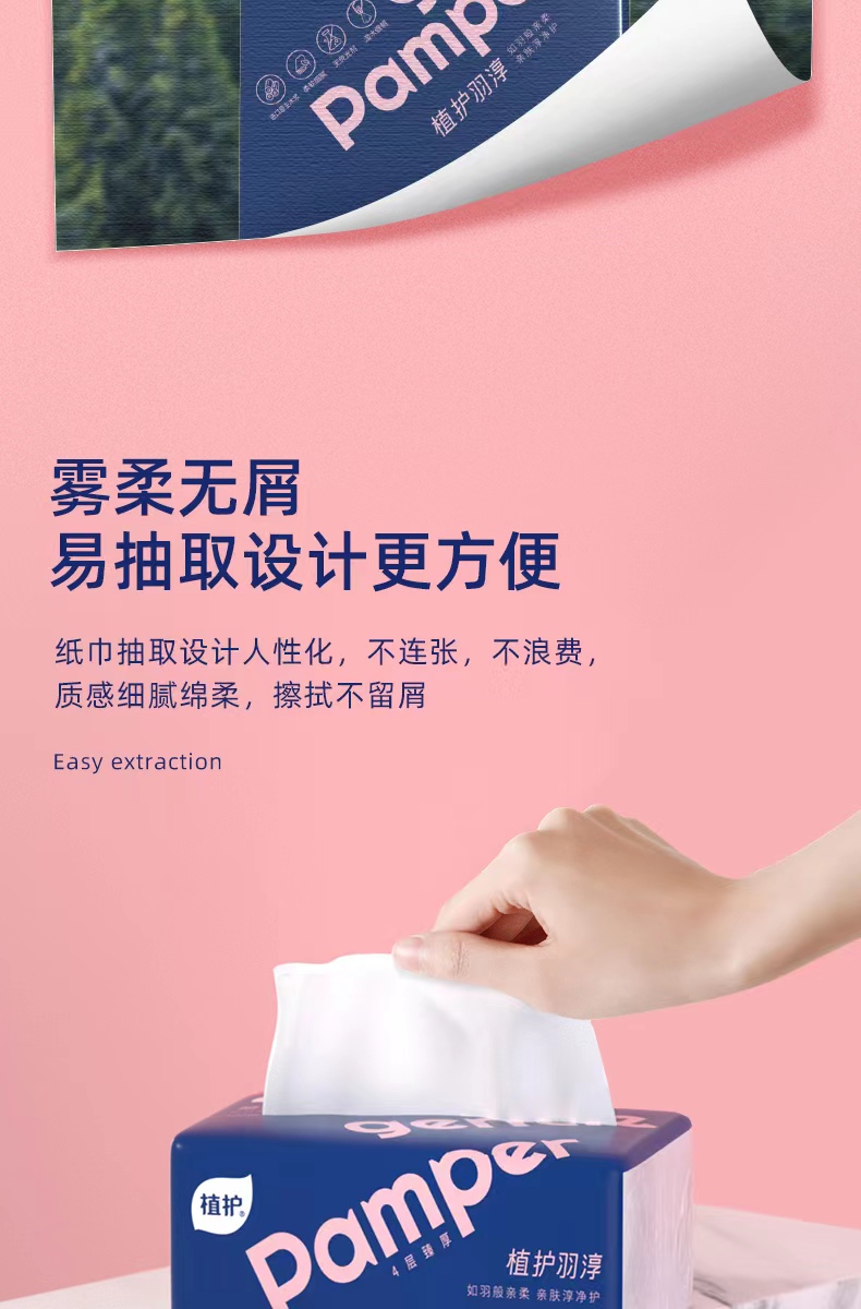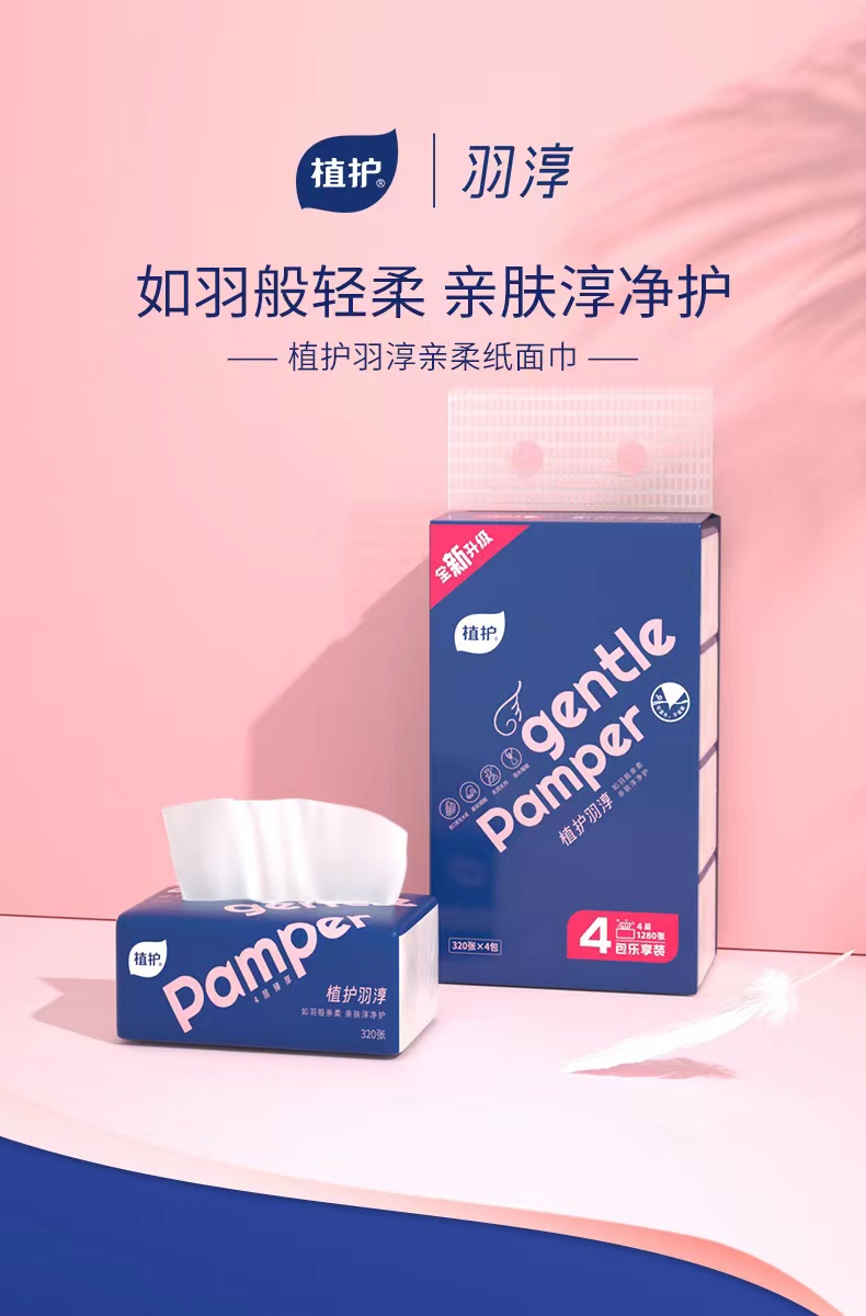 植护 羽淳(全新升级)系列 128*175mm/4层 80抽 4包/提 原木抽纸 极光蓝(单位:提)