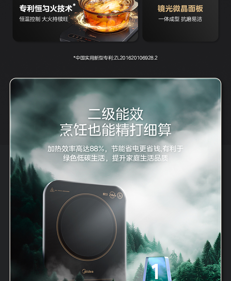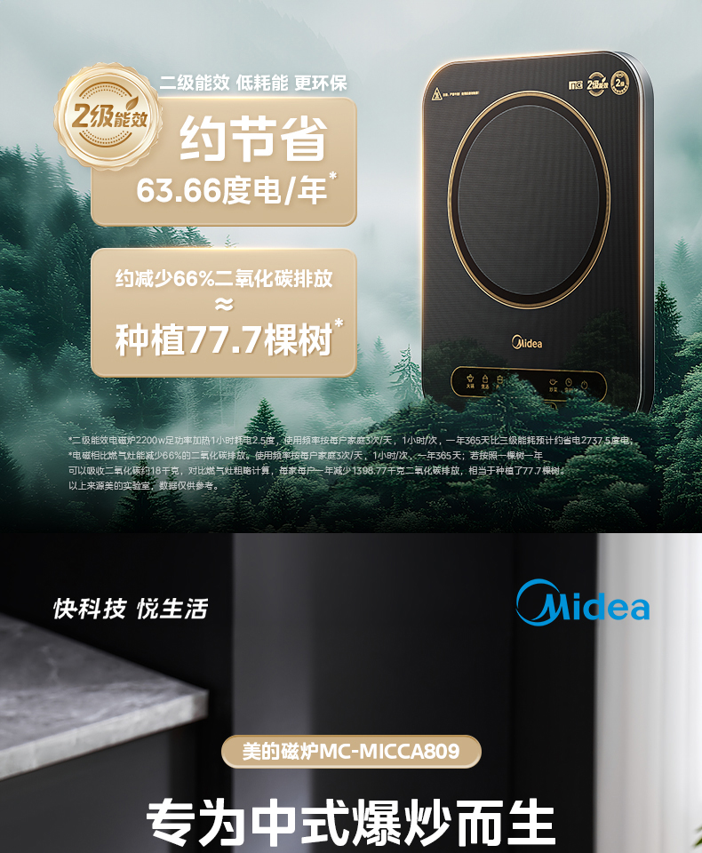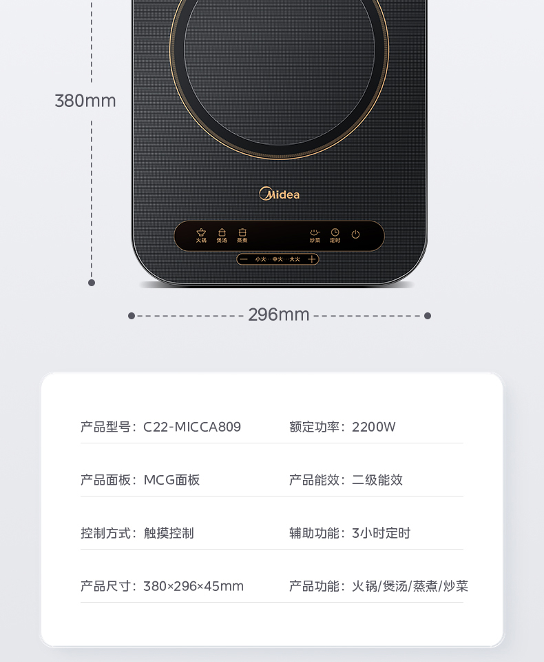 美的(Midea) C22-MICCA809 2200W 电磁炉 黑色(单位:台)