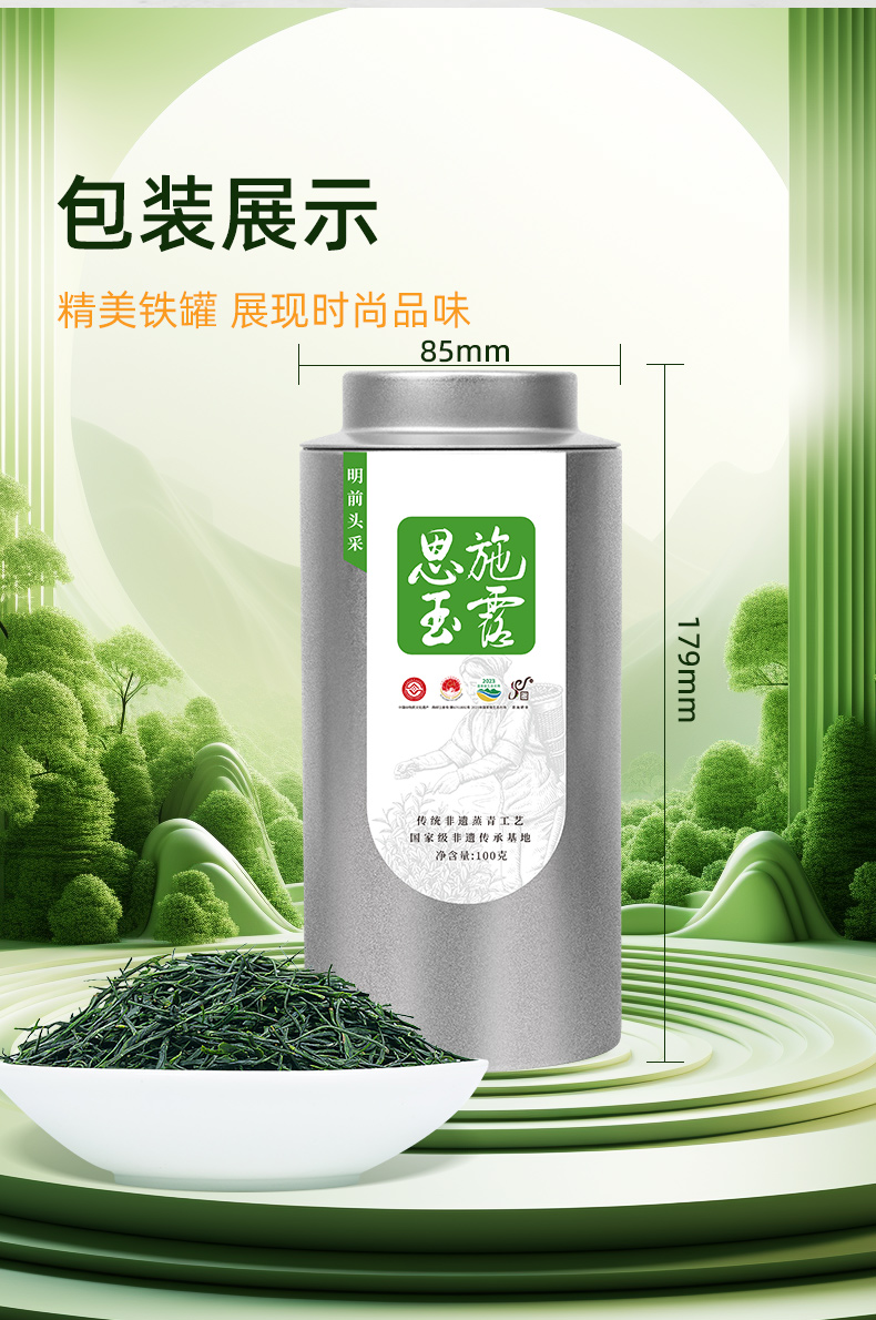 恩施玉露 富硒绿茶明前特级头采铁罐 QDHZ0100ET 100g 绿色(单位:罐)