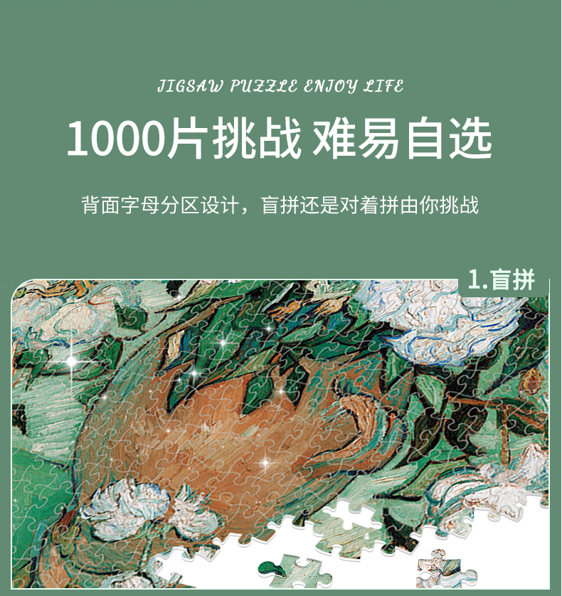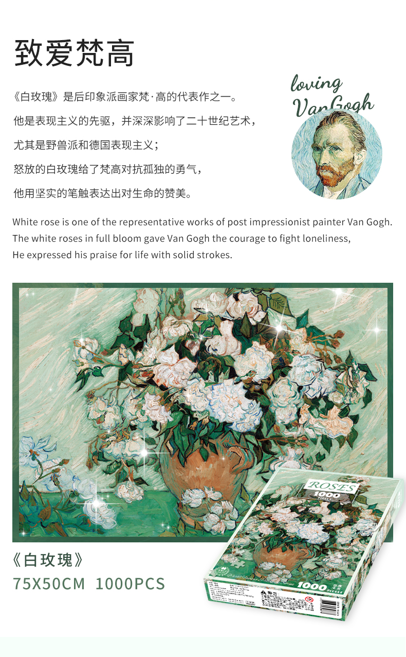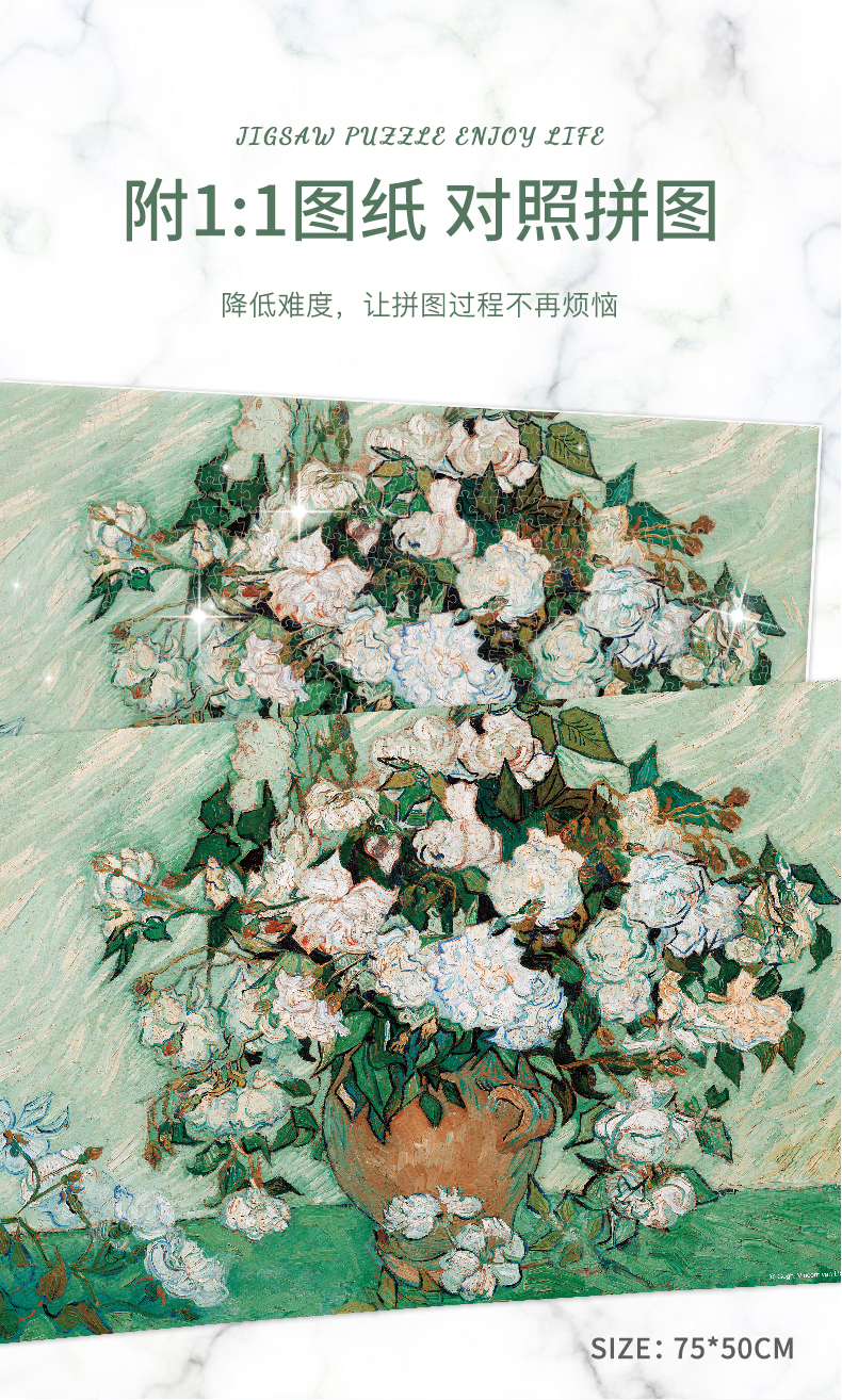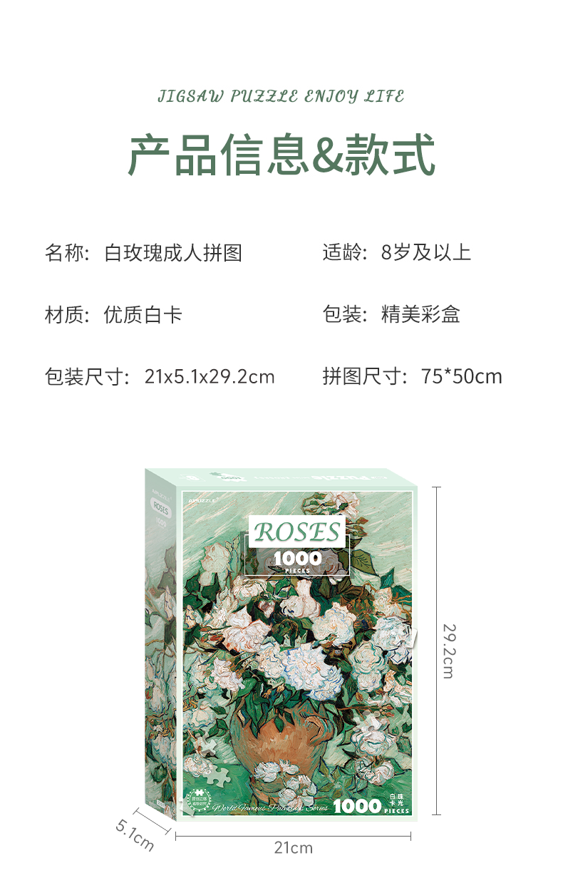 古部 11AF01K2007 白玫瑰1000片盒装拼图 8岁以上儿童益智玩具 彩色(单位:盒)