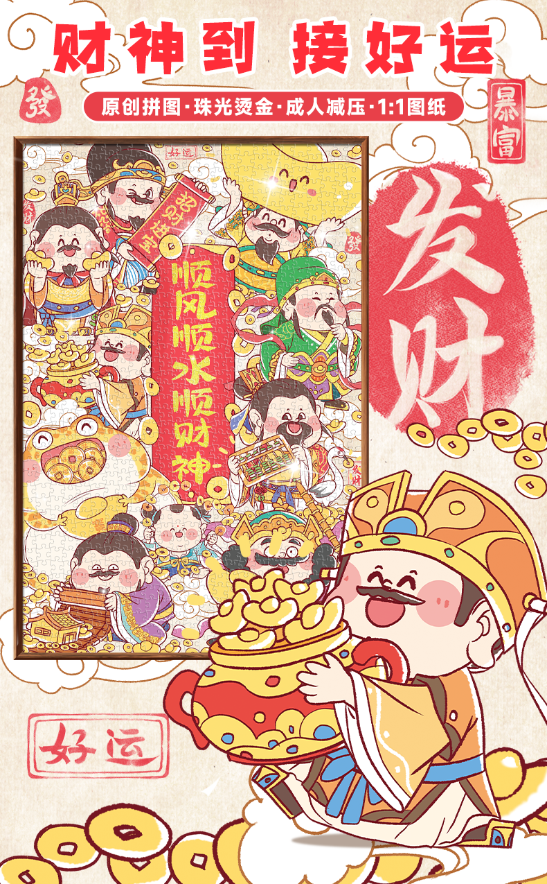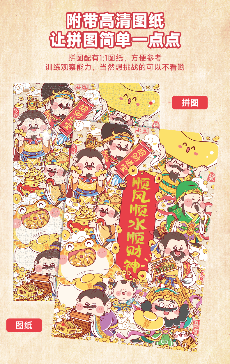 古部 11AF01K3287 财神1000片盒装拼图 8岁以上儿童益智玩具 彩色(单位:盒)