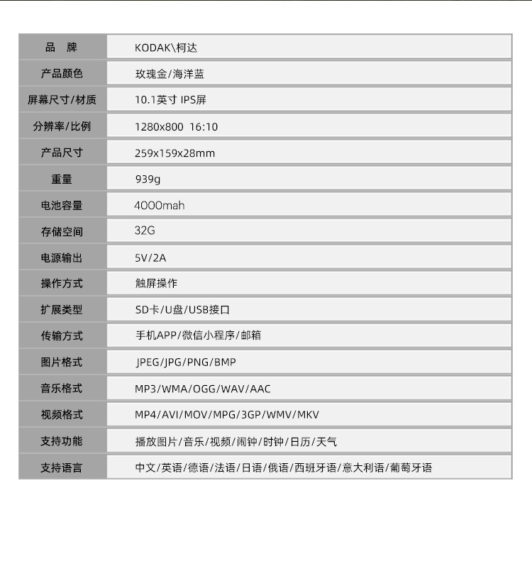 柯达(Kodak) RWF-108V 10.1英寸 智能WIFI云相框 玫瑰金(单位:个)