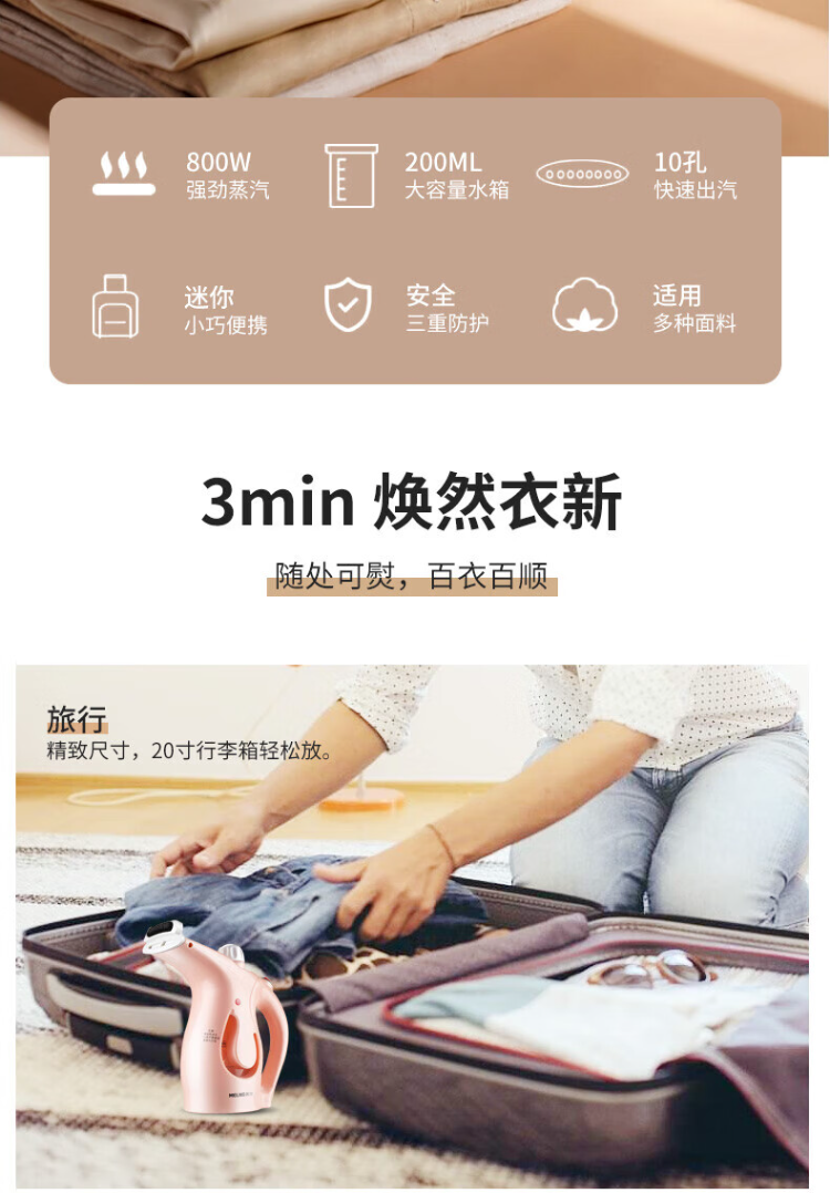 美菱(MeiLing)MI-GLZ-0002 手持挂烫机 200mL(单位:台) 粉色