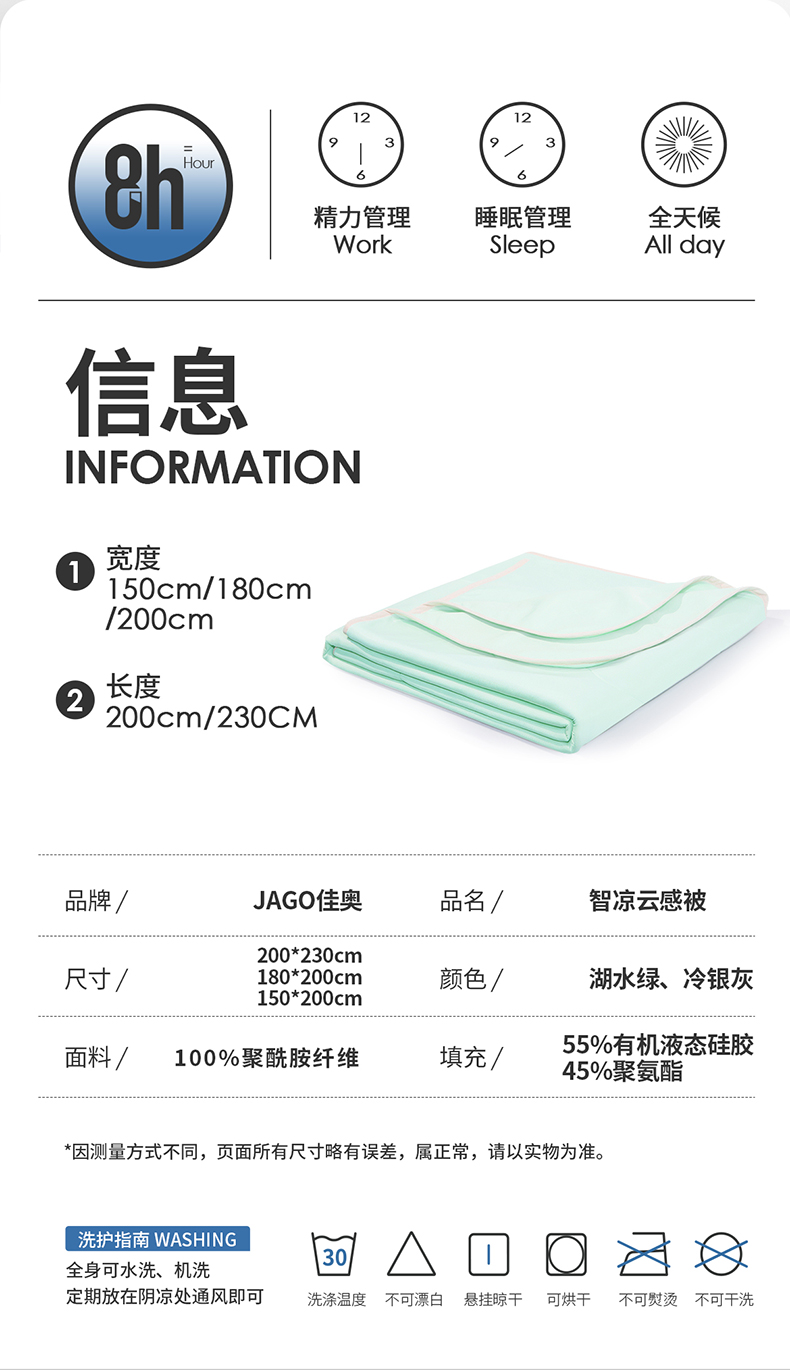 佳奥(JAGO) 255101J2600MB5 180*200cm 智凉云感被灰色中号 180*200cm 浅灰色(单位:张)