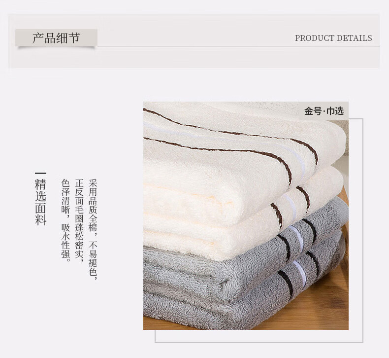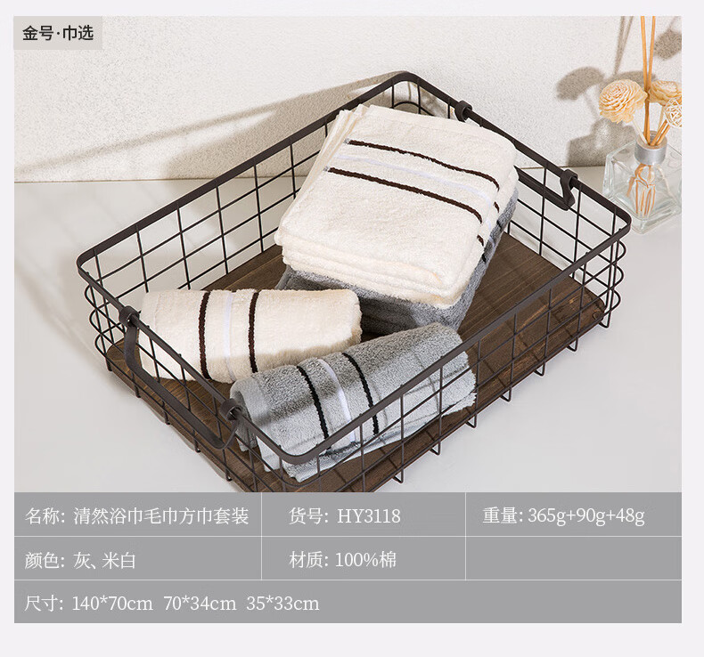 金号/清然/系列-26 浴巾方巾毛巾巾选袋装HY3118(单位:袋) 白色、灰色