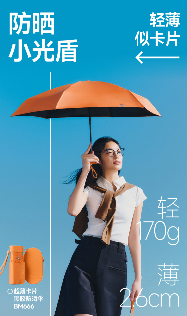 蕉下(beneunder) BM666 UPF50+ 黑胶卡片防晒伞 大象灰(单位:把)