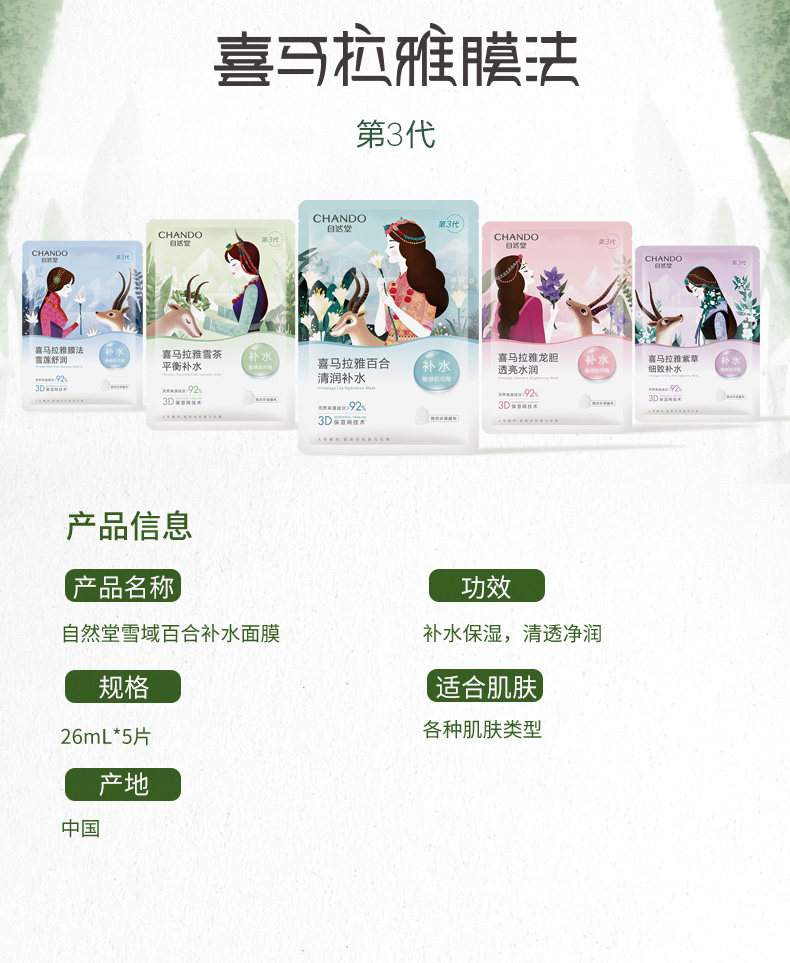 自然堂(CHANDO)雪域百合补水面膜26mL*5PCS*3盒(单位:盒) 白色