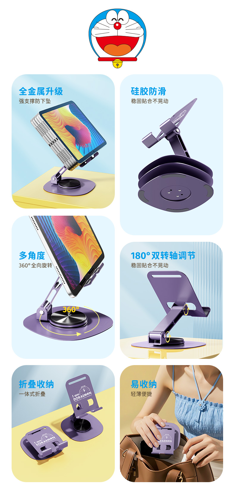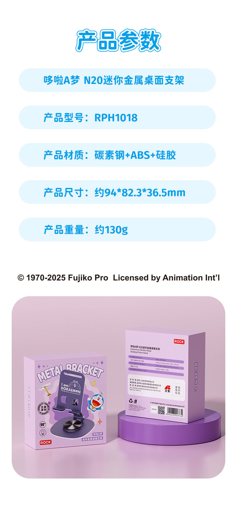ROCK RPH1018 产品尺寸:约94*82.3*36.5mm 迷你金属桌面支架 紫色(单位:个)