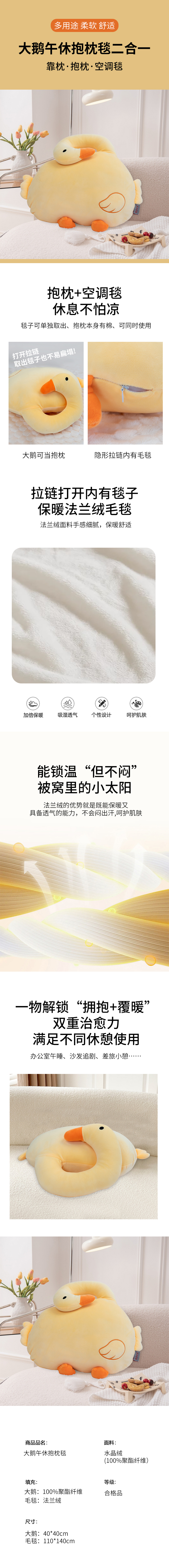 唐纳家纺 TN-PB25032 枕面:40*40cm毯子:110*140cm 大鹅午休抱枕毯 鹅仔黄(单位:个)