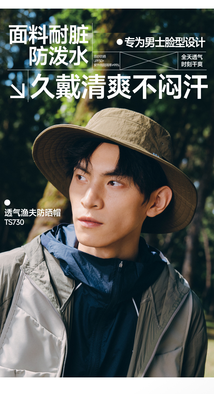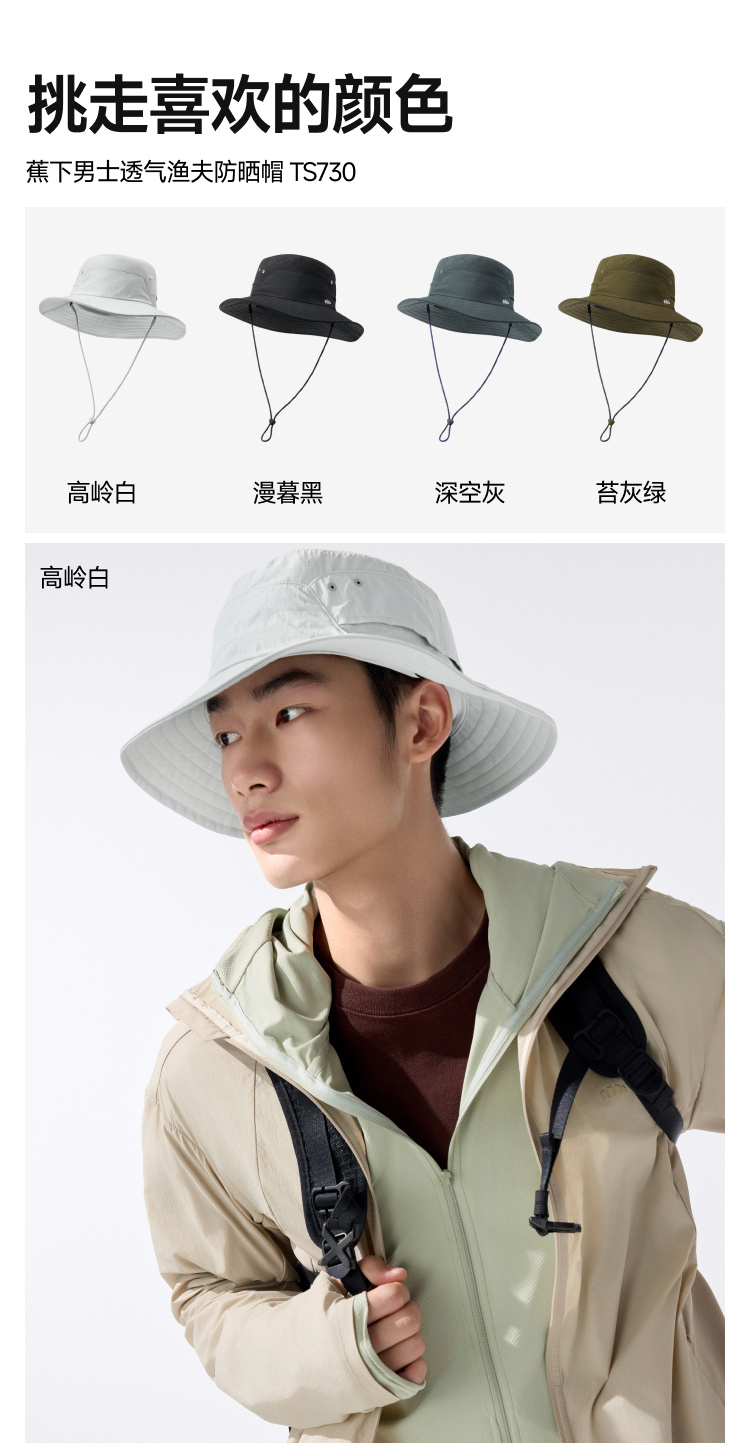 蕉下(beneunder) TS730 XF码 男士透气渔夫防晒帽 漫暮黑(单位:顶)
