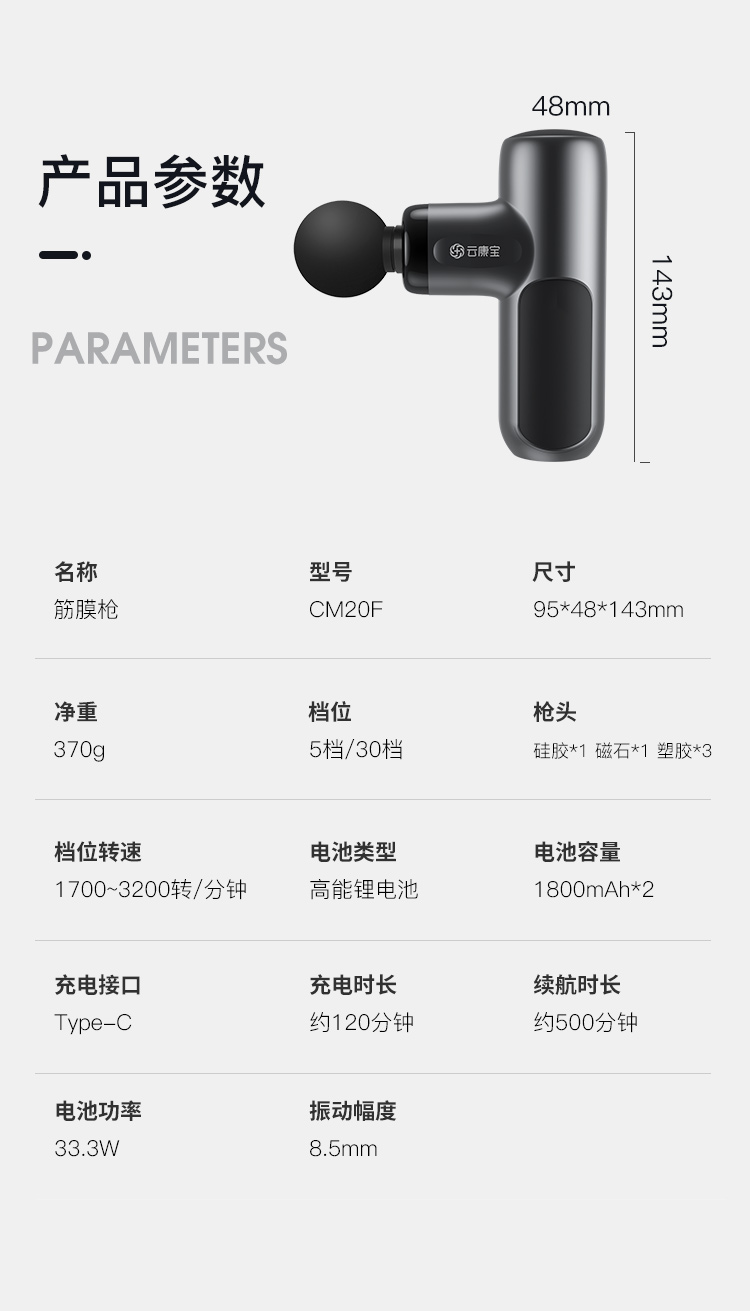 云康宝 CM20F 净重370g 筋膜枪 灰色(单位:台)