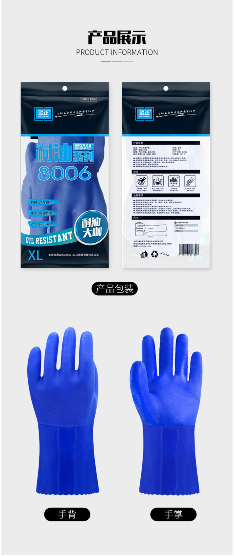 贸正(MAOZHENG) 8006 XL 耐酸碱劳保手套 宝石蓝(单位:付)