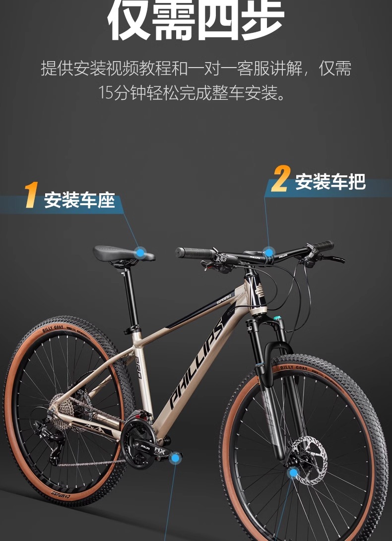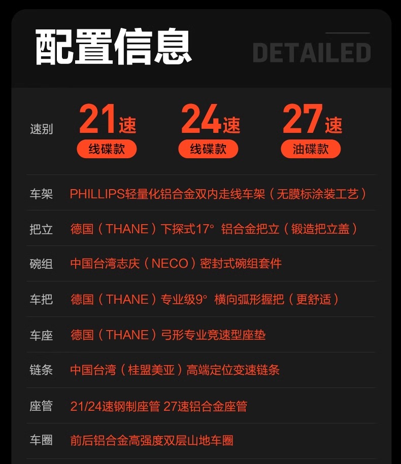 菲利普(PHILLIPS) 山地车 PRO 21速24寸 赤焰橙(单位:辆)