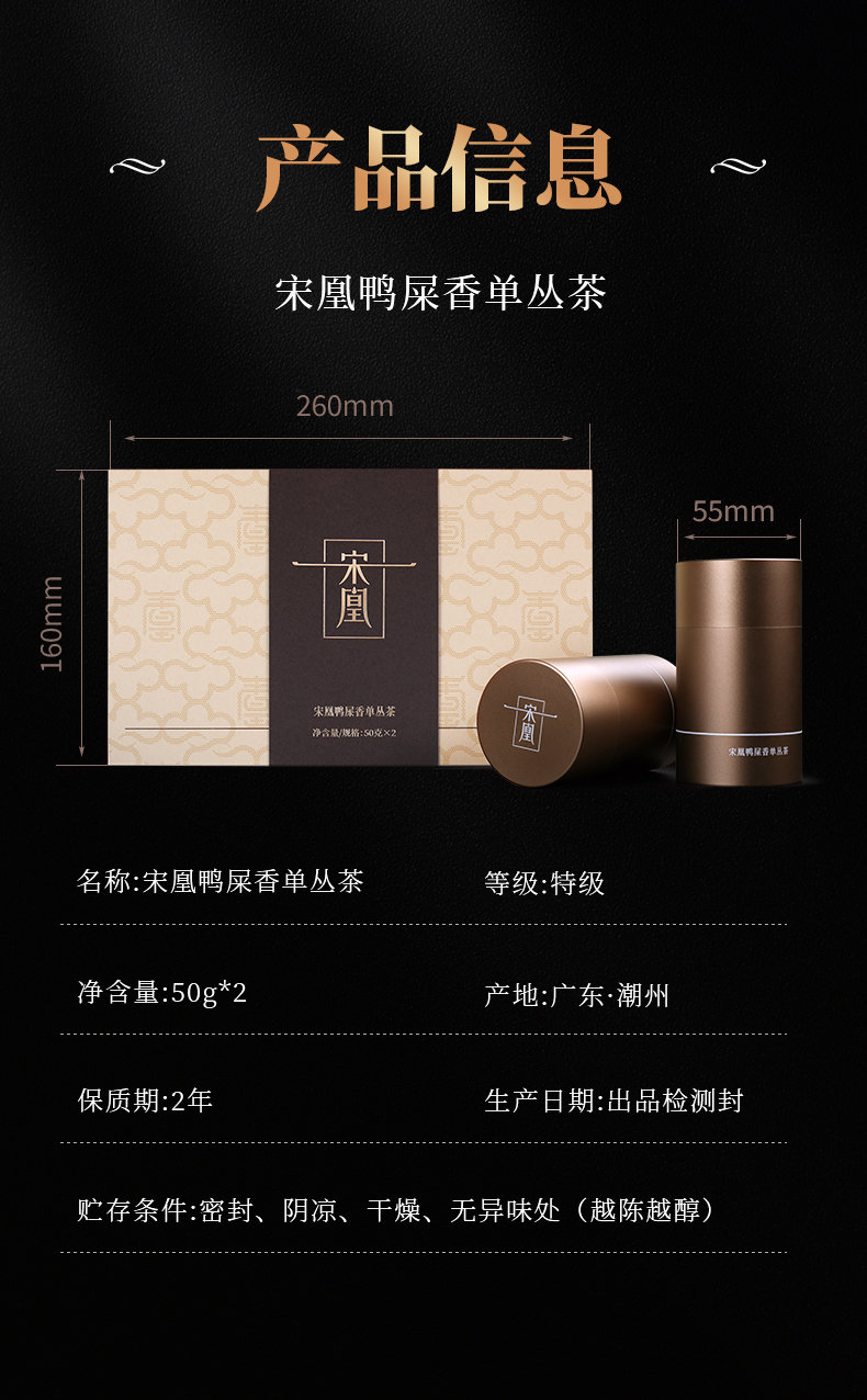 宋凰 潮州乌龙茶凤凰单枞 密韵特级鸭屎香 50g*2罐 混色(单位:盒)