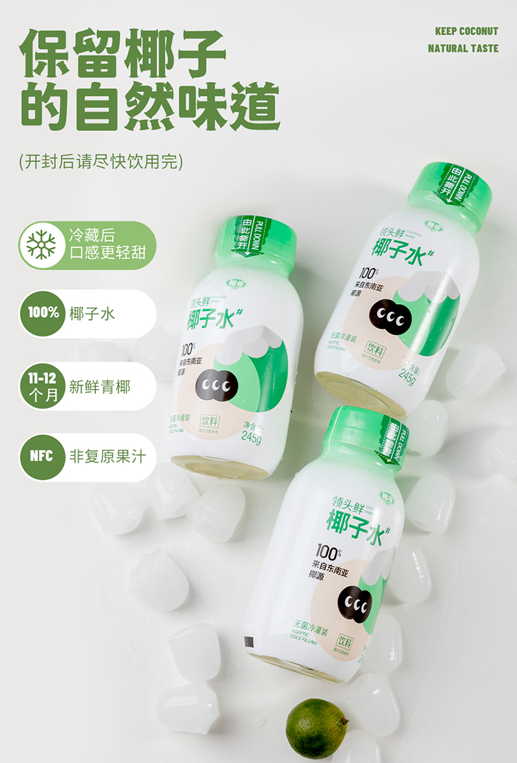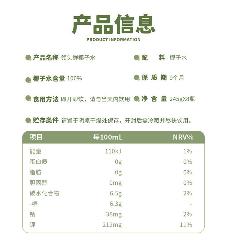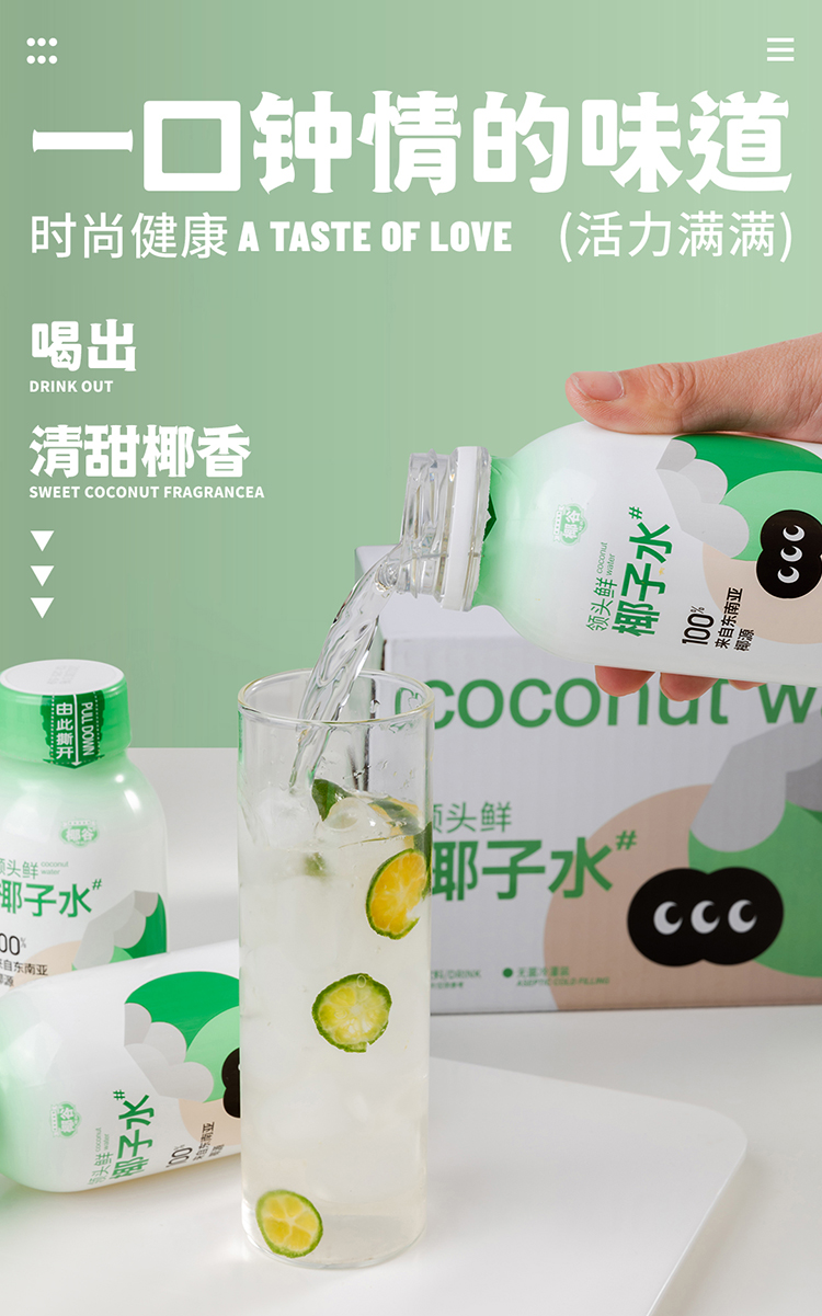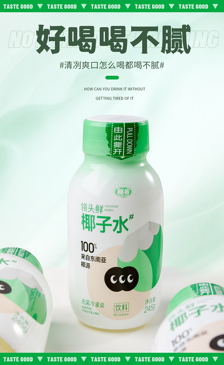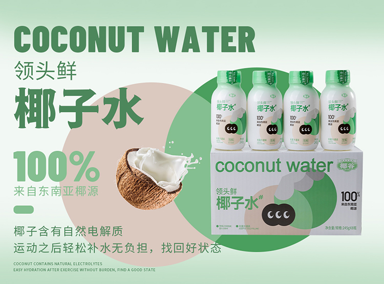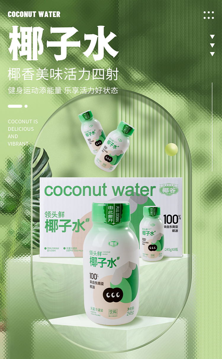 椰谷 领头鲜椰子水 245g*8瓶 无添加纯果汁 浅绿色(单位:箱)