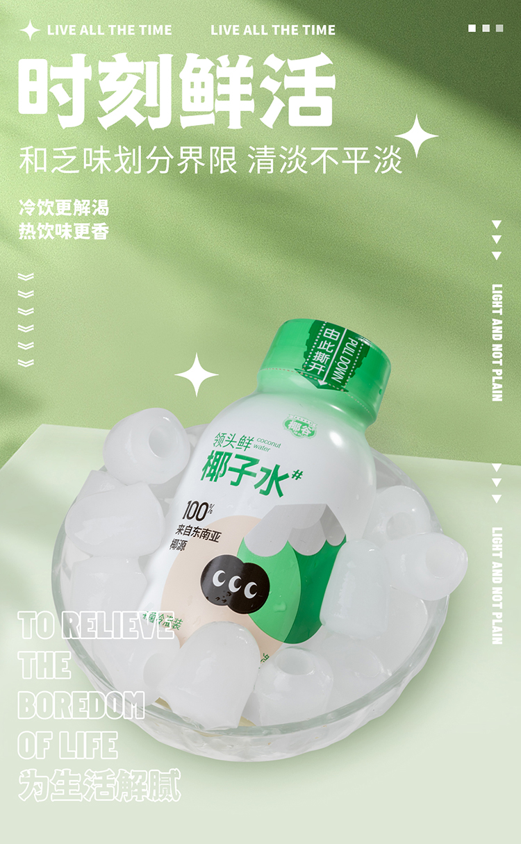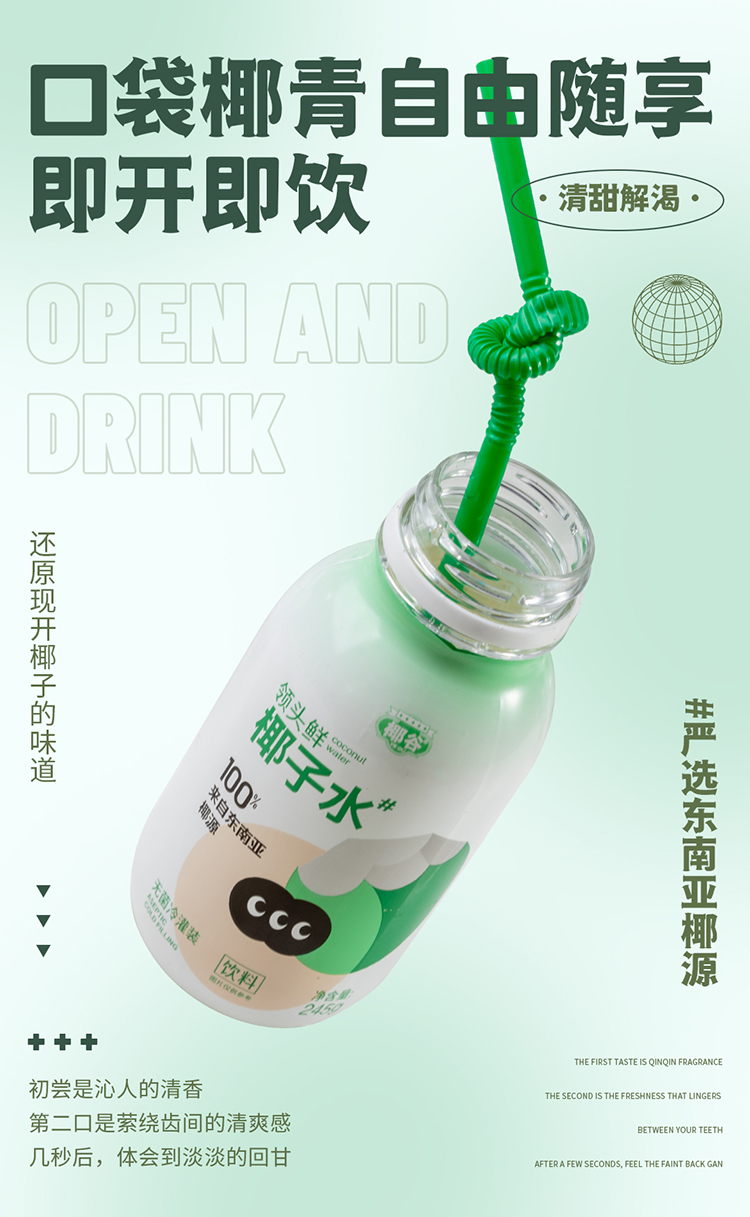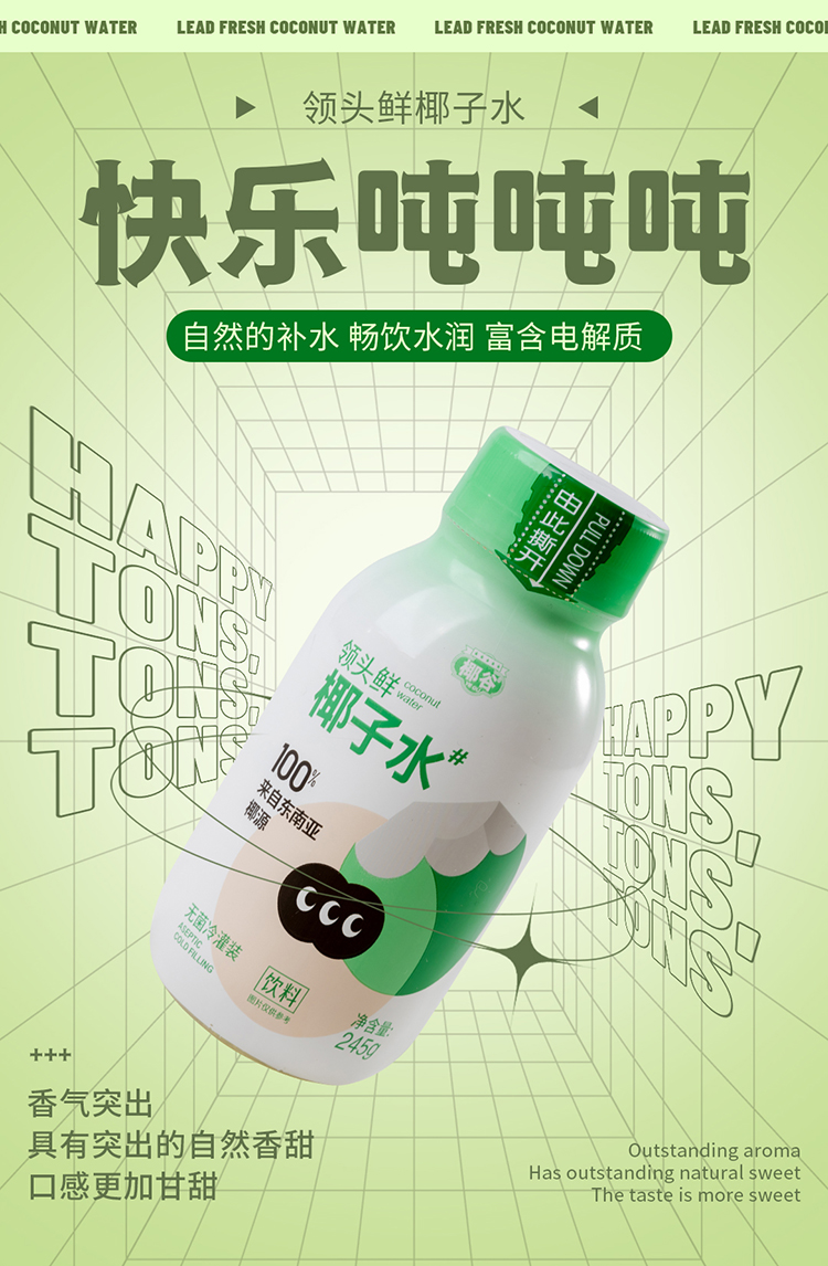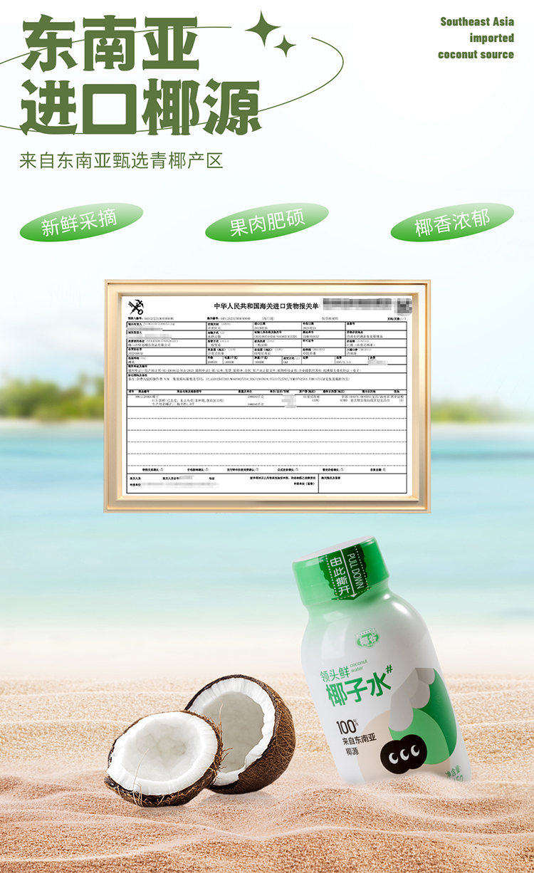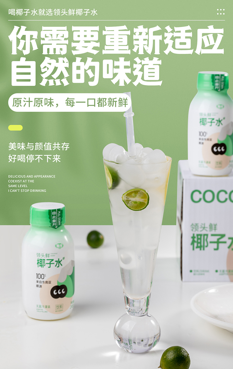 椰谷 领头鲜椰子水 245g*8瓶 无添加纯果汁 浅绿色(单位:箱)