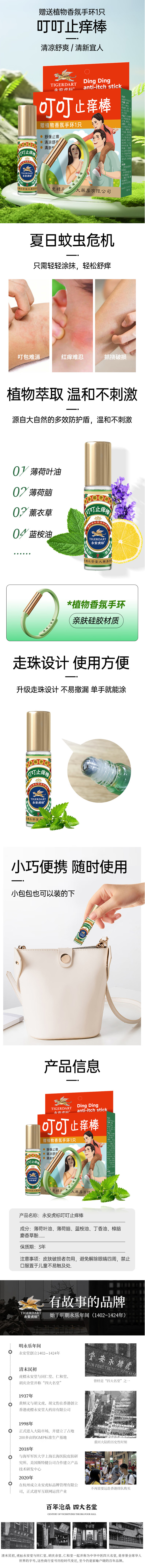 永安虎标 清凉舒爽薄荷薰衣草驱蚊 叮叮止痒棒 10ml+手环 雾雨绿(单位:盒)