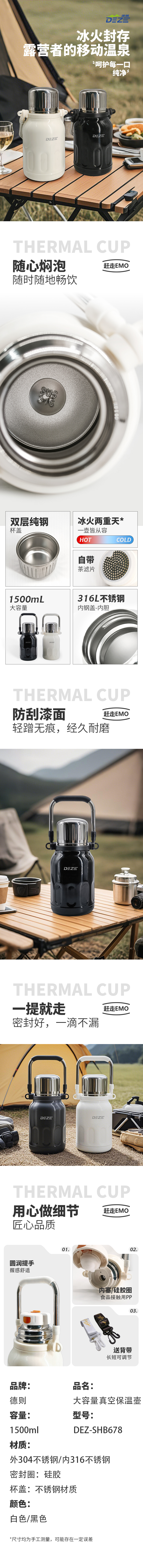 德则 大容量真空保温壶 DEZ-SHB678 1500ml 白色(单位:个)
