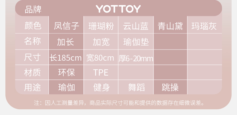 YOTTOY 体位线系列双色瑜伽垫80cm AD1LTS185809 9mm 云山蓝(单位:条)