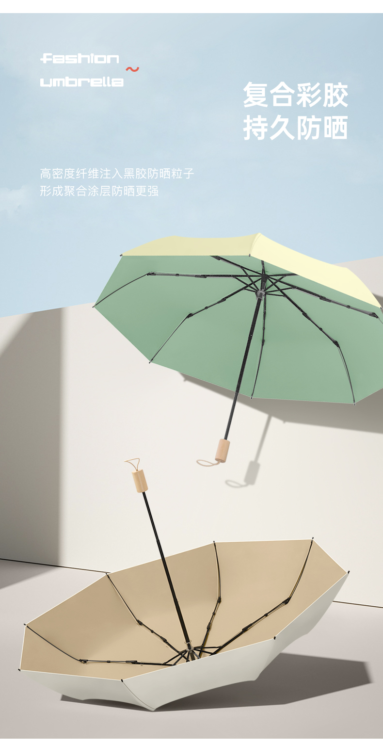 美度三折彩胶折叠防晒防紫外线女晴雨两用太阳伞阻隔紫外线M3200(单位:把) 深绿色