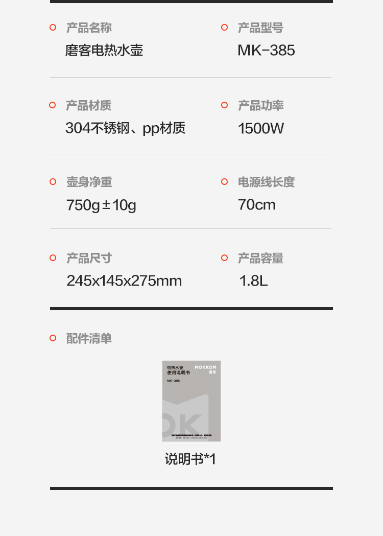 磨客(MOKKOM) MK-385W 1.8L 养生壶 白色(单位:台)