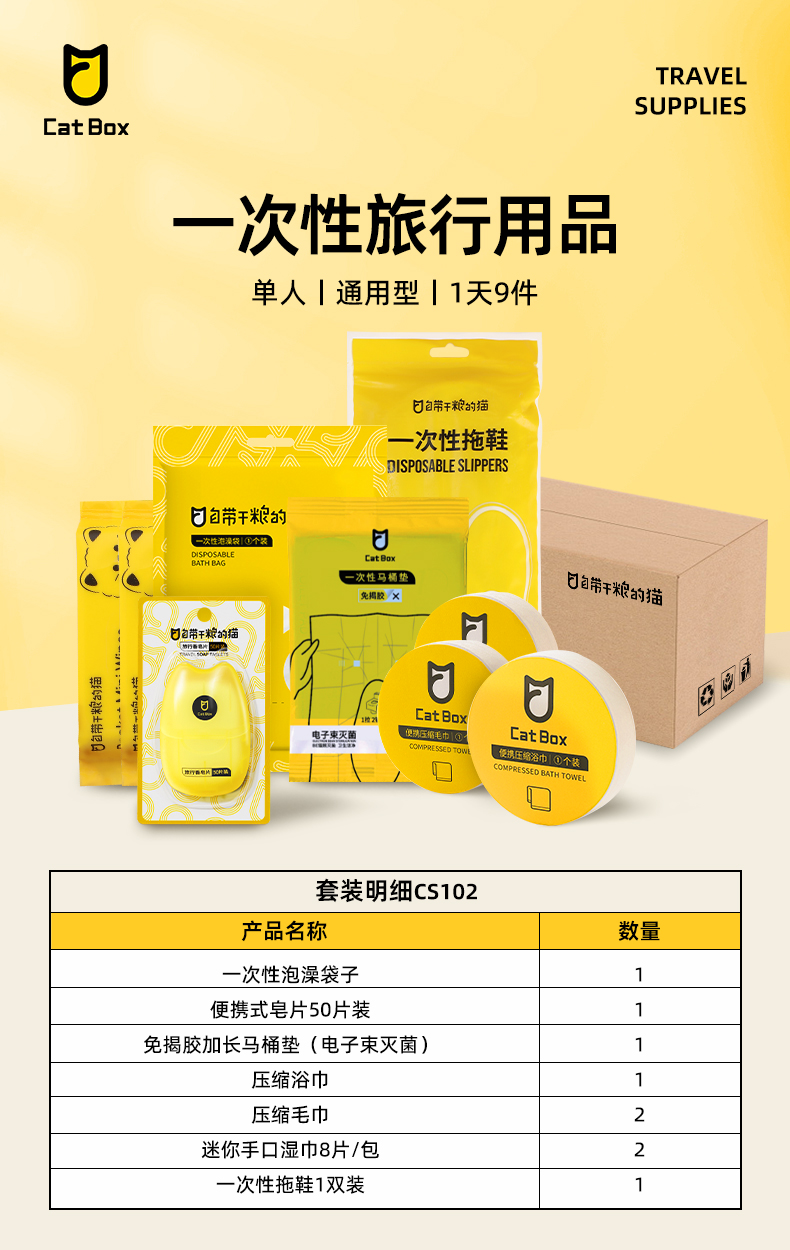 自带干粮的猫 一次性旅行用品 CS102 单人1天9件(通用型) 白色(单位:套)