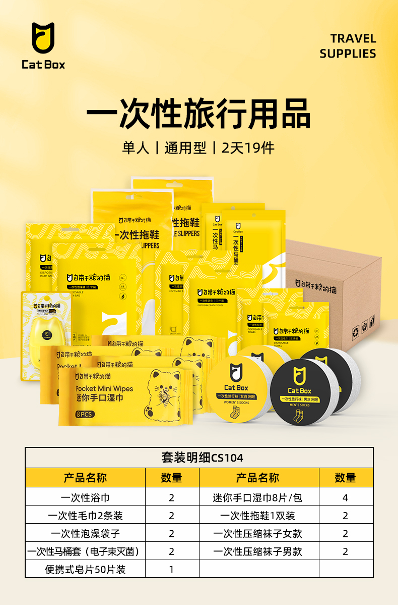 自带干粮的猫 一次性旅行用品 CS104 单人2天19件(通用型) 白色(单位:套)