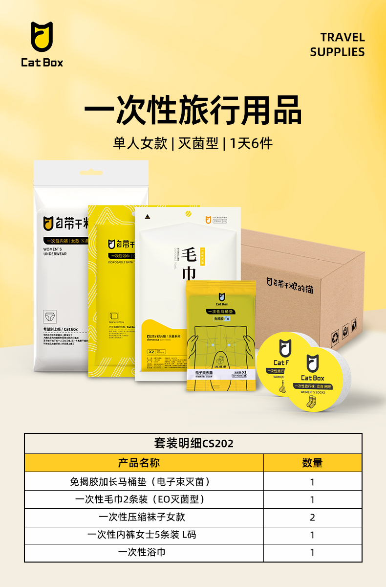 自带干粮的猫 一次性旅行用品 CS202 单人女款1天6件(灭菌型) 白色(单位:套)